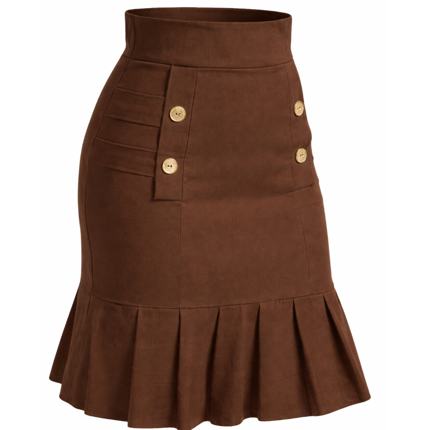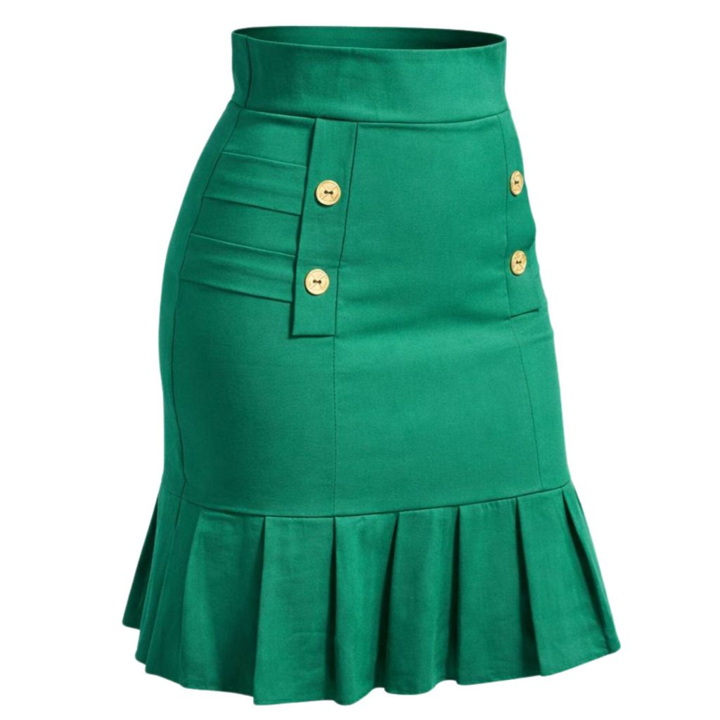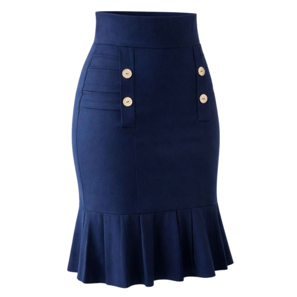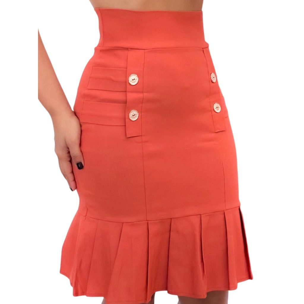 Saia alfaiataria Feminina Saia Mídi Evangélica Detalhe Botões E Babadinho Com Lycra