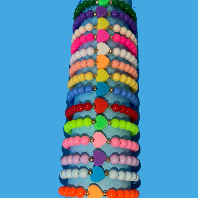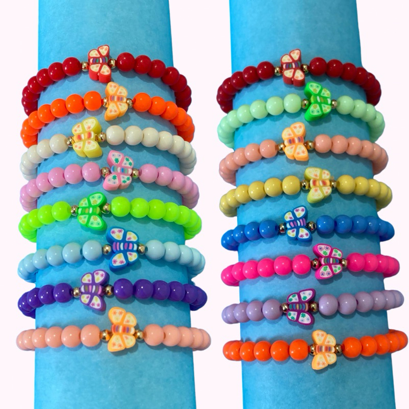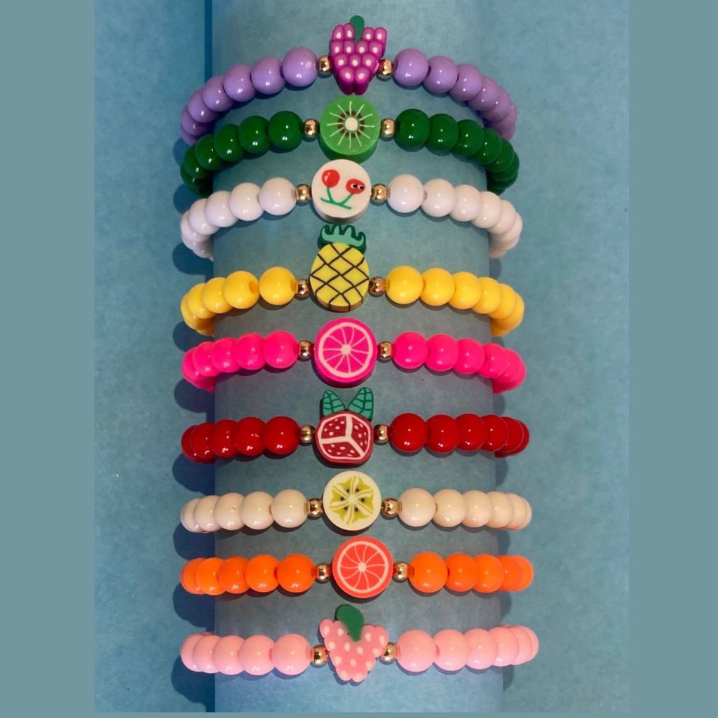 Kit 8 Pulseiras Miçanga Frutas Patas Coração Flores Estrelas Mix Infantil Criança