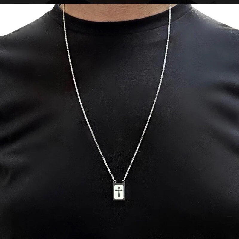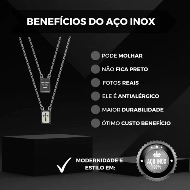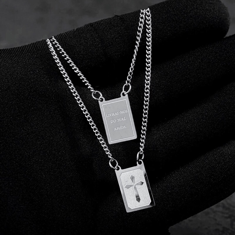 Escapulário ”Livrai-nos do mal, amém” Prata em Aço Inoxidável Masculino Feminino