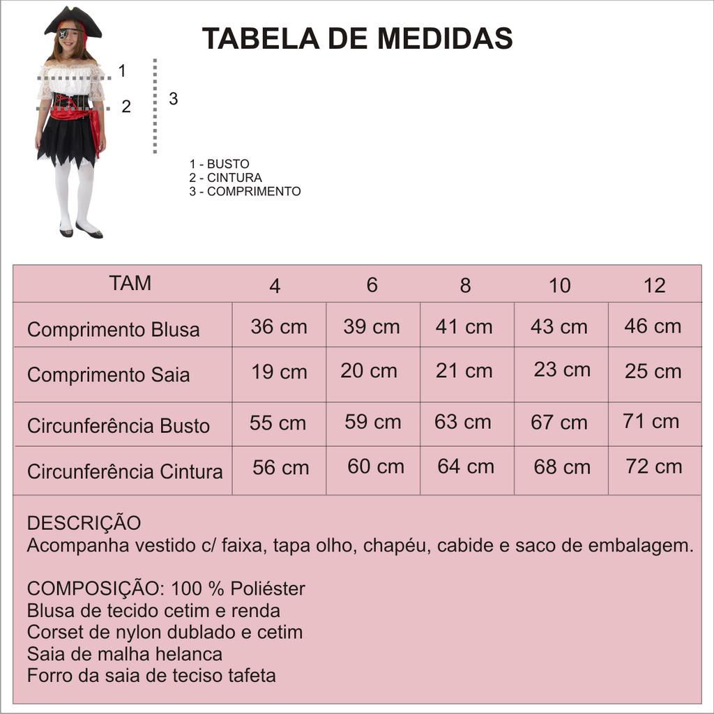 Fantasia Pirata Corsário Halloween Infantil Feminino Luxo