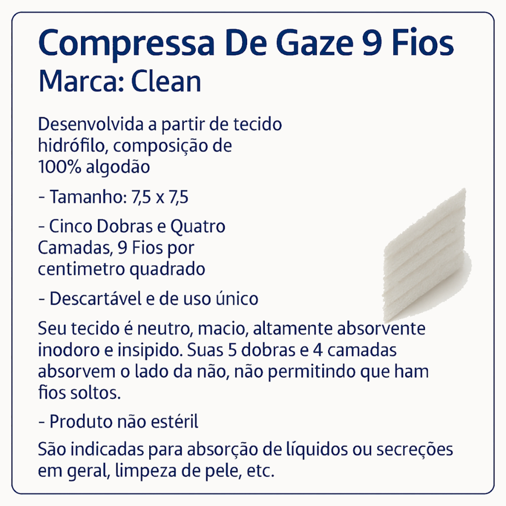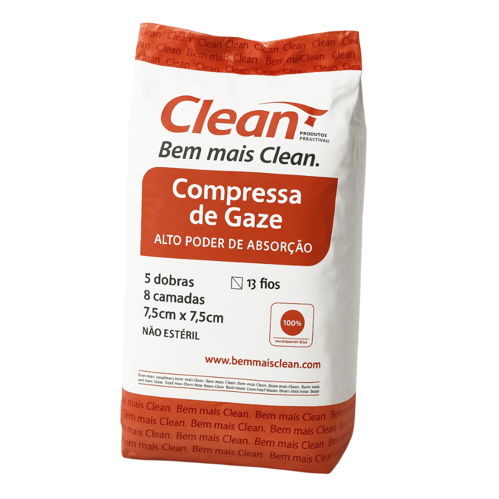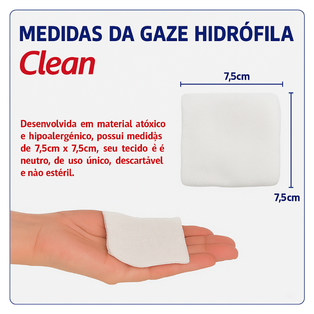 Compressa de Gaze 13 Fios 100g ou 240g Algodão Pacote Curativo Hidrófila Clean Não Estéril