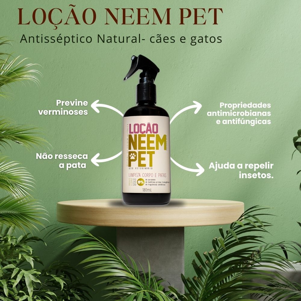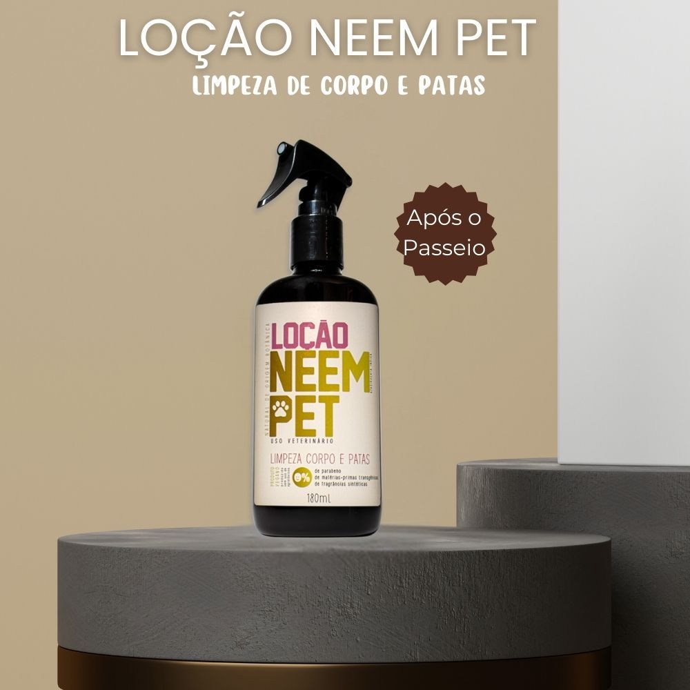 Loção Neem Pet Limpeza Corpo e Patas 180ml Natural Vegano Higiene Cães Gatos - Openeem