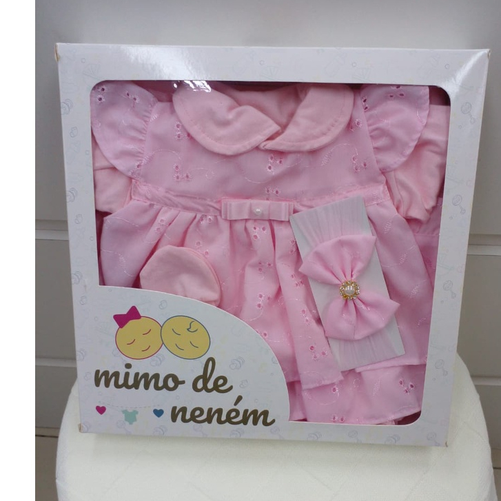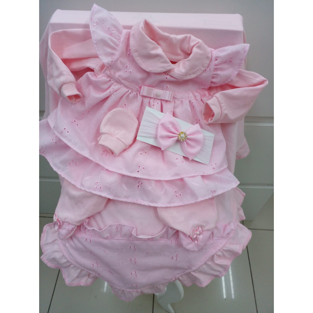 Kit Saída De Maternidade Menina Vestido 5 Peças Laise Rosa