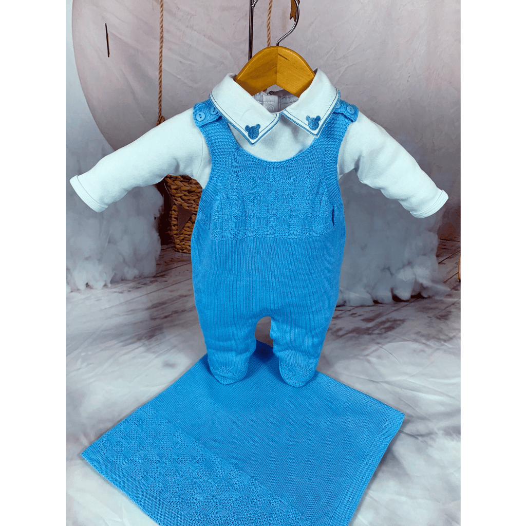 Kit Saida Maternidade Menino Bebe Tricot Azul Bebê Jardineira