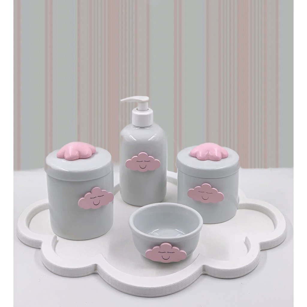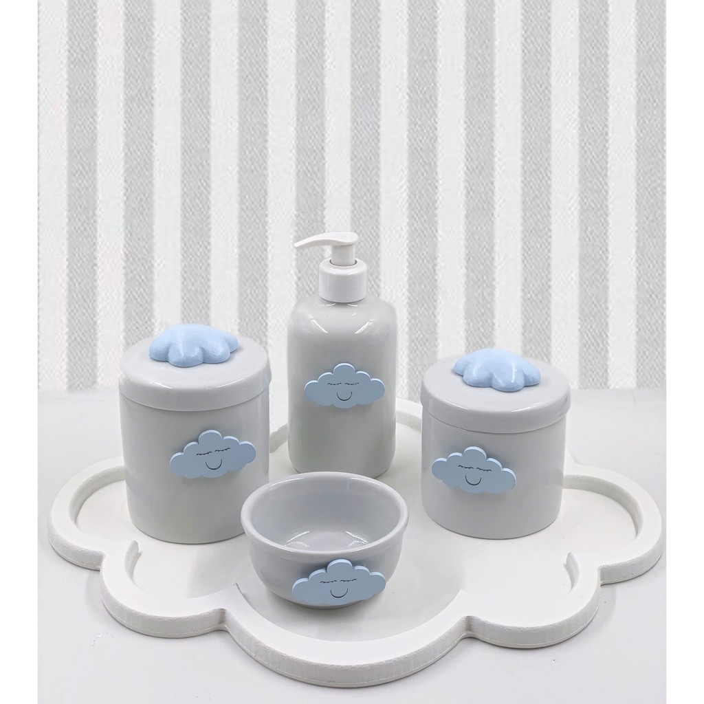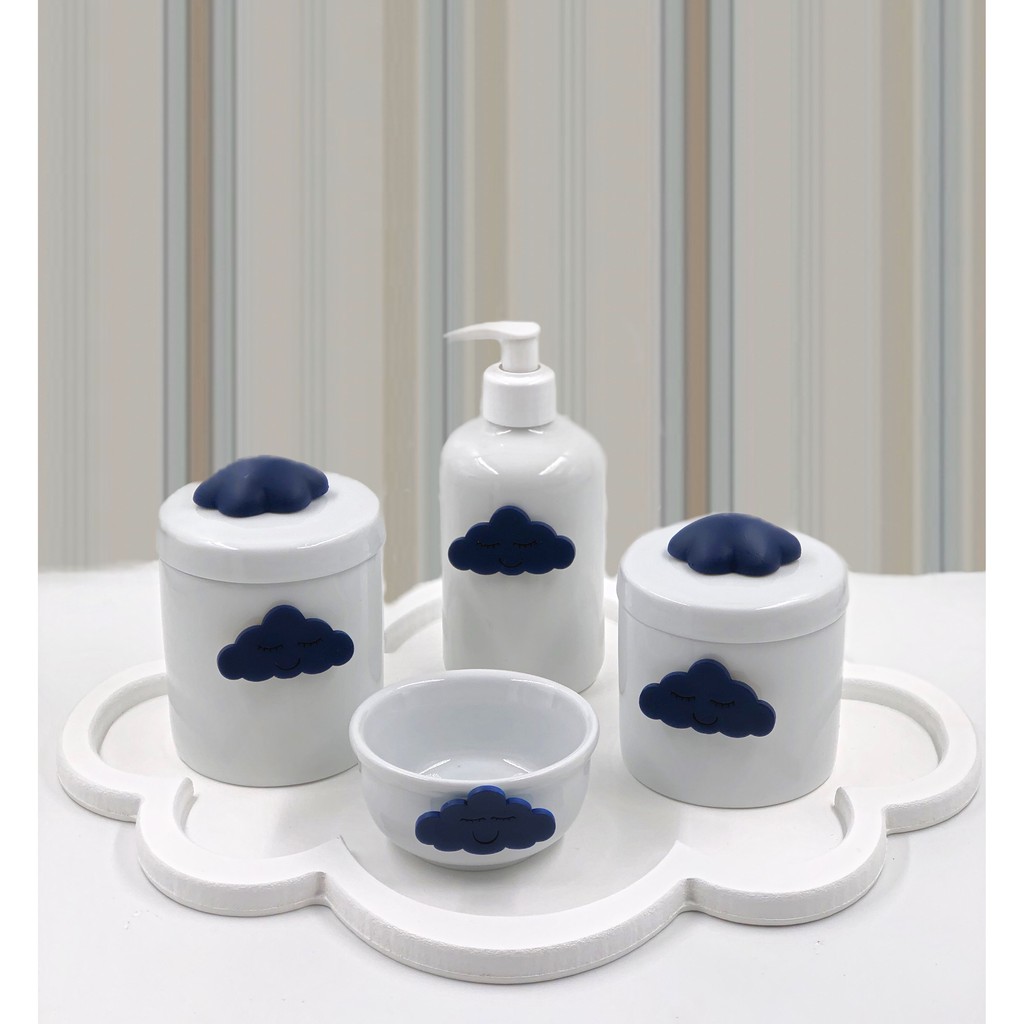 Kit Higiene Bebê Porcelana Nuvem Azul Rosa Prata Marinho 5 Peças