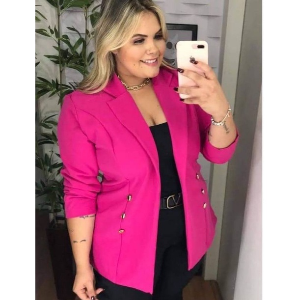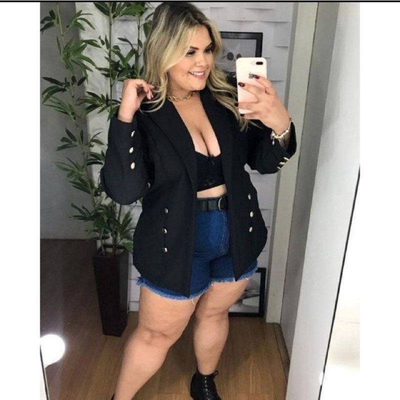 Blazer Feminino Comprido Plus Size Tamanho Grande Com Botões