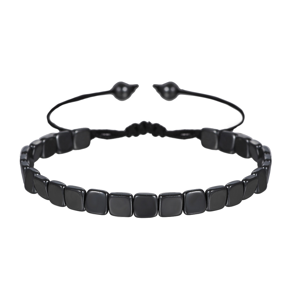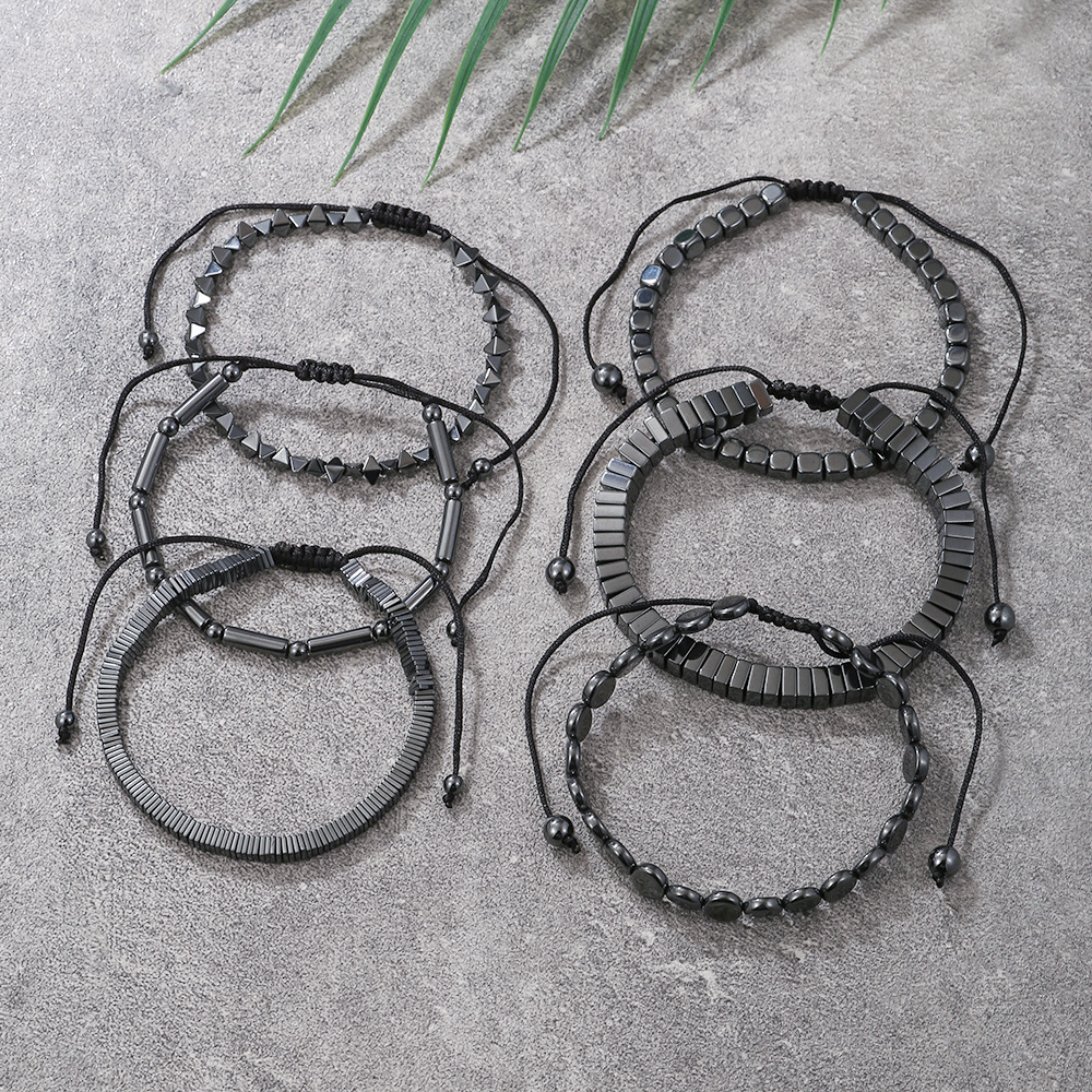 Pulseira De Hematita Preta Clássica Ajustável Mulheres Homens Cura Irregular De Contas Pulseiras De Saúde Perda De Peso Jóias Trançadas