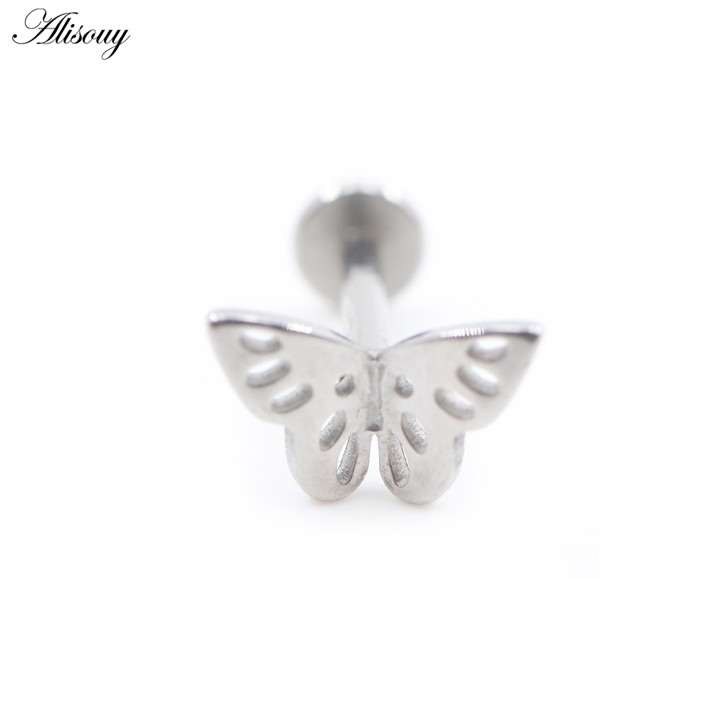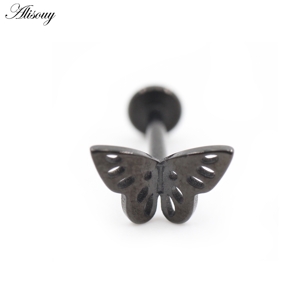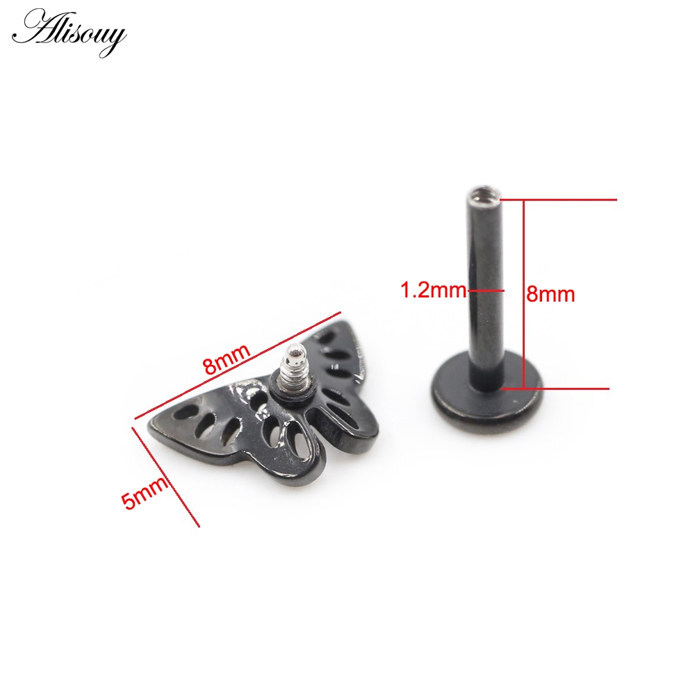Alisouy 1 Peça De Aço Inoxidável Borboleta Morcego Rosca Interna Tragus Helix Labret Anéis Labiais Cartilagem Brinco Pie