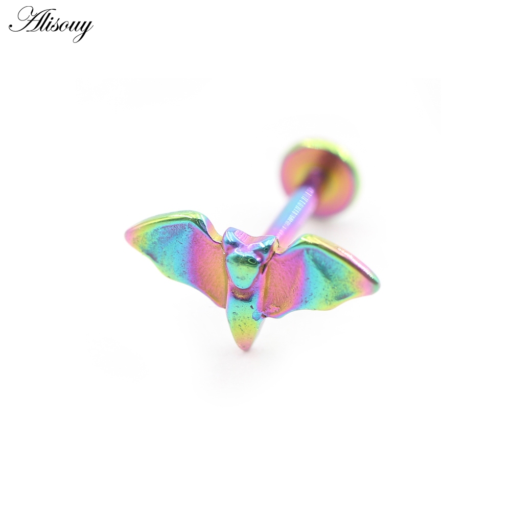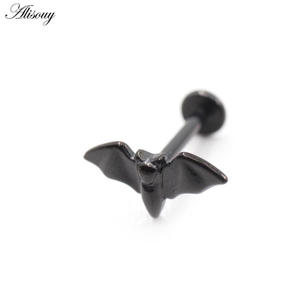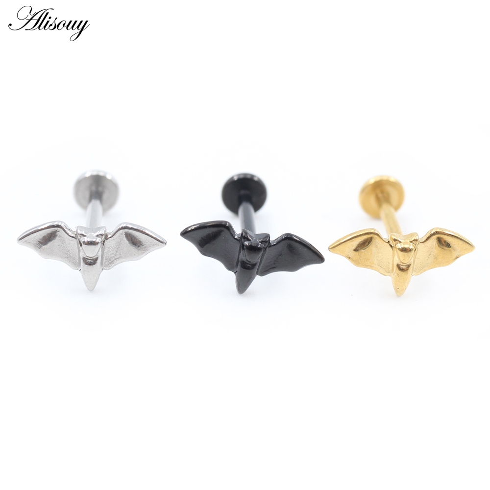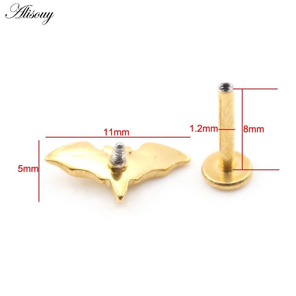 Alisouy 1 Peça De Aço Inoxidável Borboleta Morcego Rosca Interna Tragus Helix Labret Anéis Labiais Cartilagem Brinco Pie