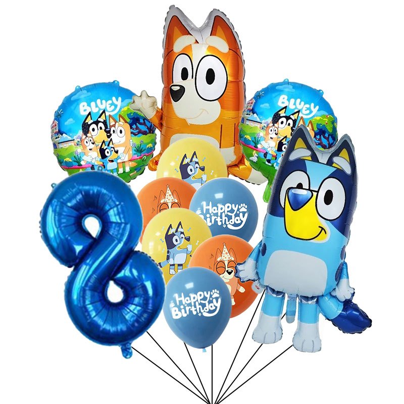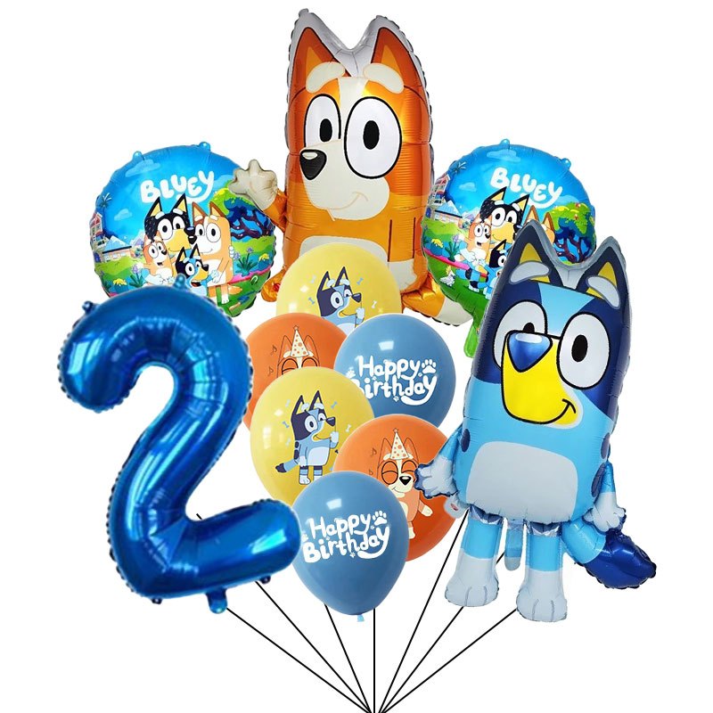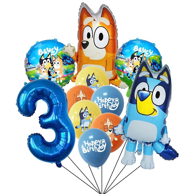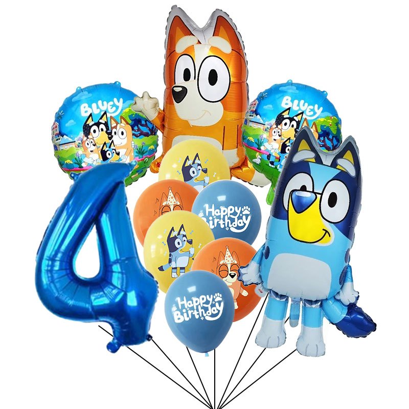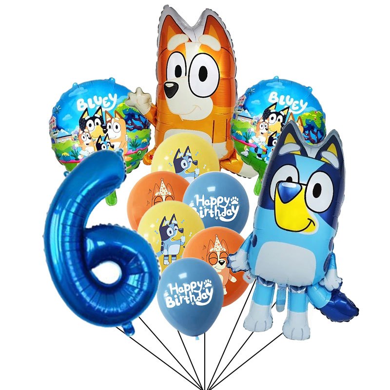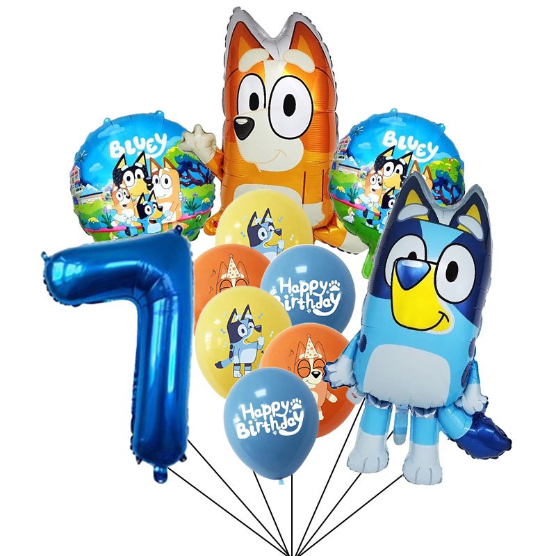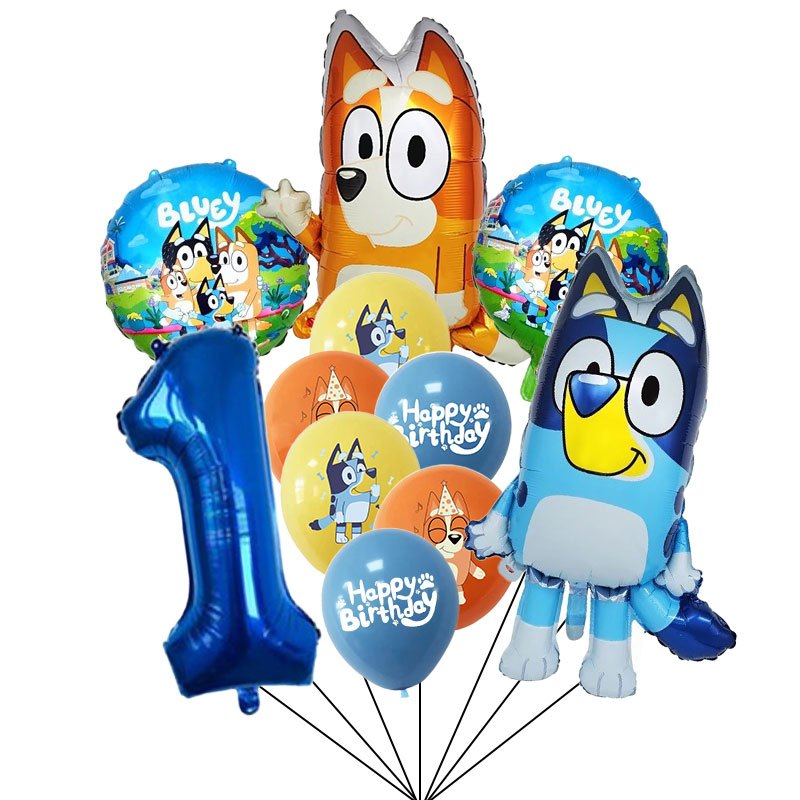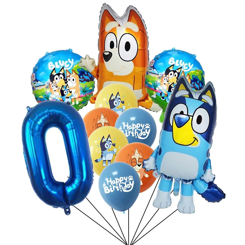 11 Pc/Lote Azul Laranja Cão Balão De Aniversário Conjunto Folha Alumínio Número Decoração Crianças Favor