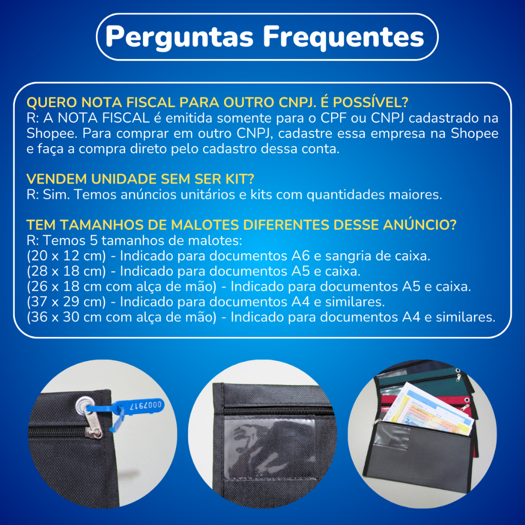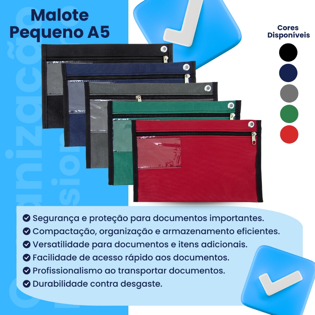 Malote Pasta Documentos Escritório Contabilidade Nylon 28x18 cm Pequeno A5 Sangria Dinheiro Caixa