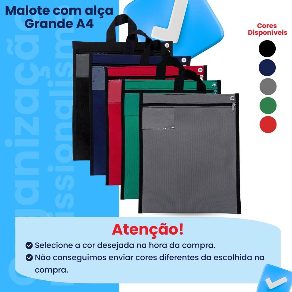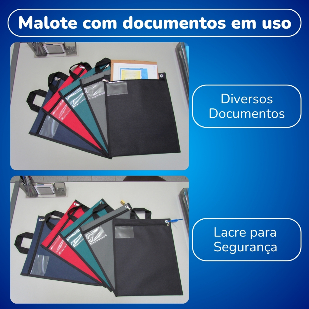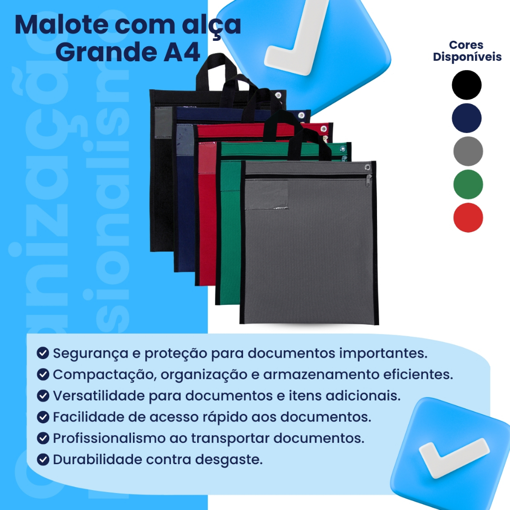 Malote Pasta c/ Alça Documentos Escritório Nylon 36x30 cm A4 Grande Contabilidade Visor Ilhós