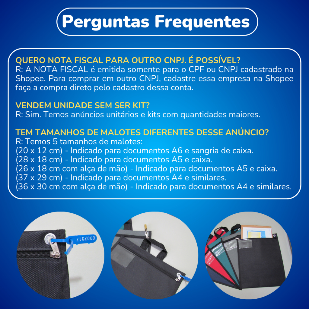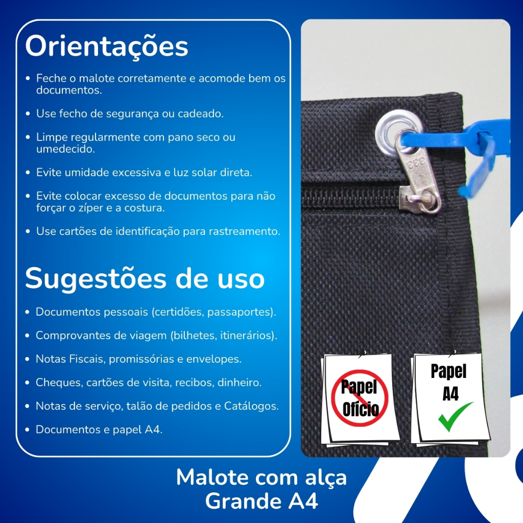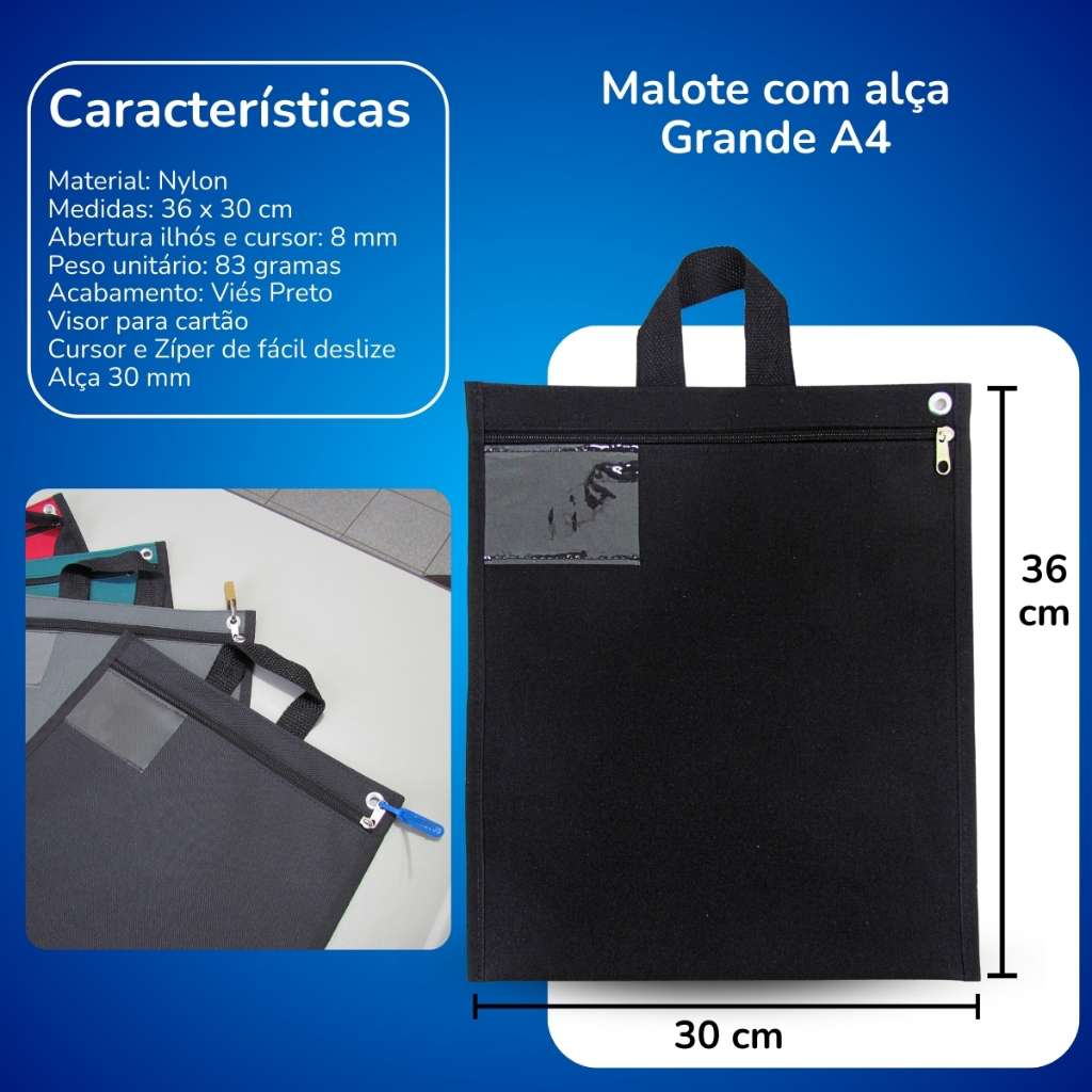 Malote Pasta c/ Alça Documentos Escritório Nylon 36x30 cm A4 Grande Contabilidade Visor Ilhós