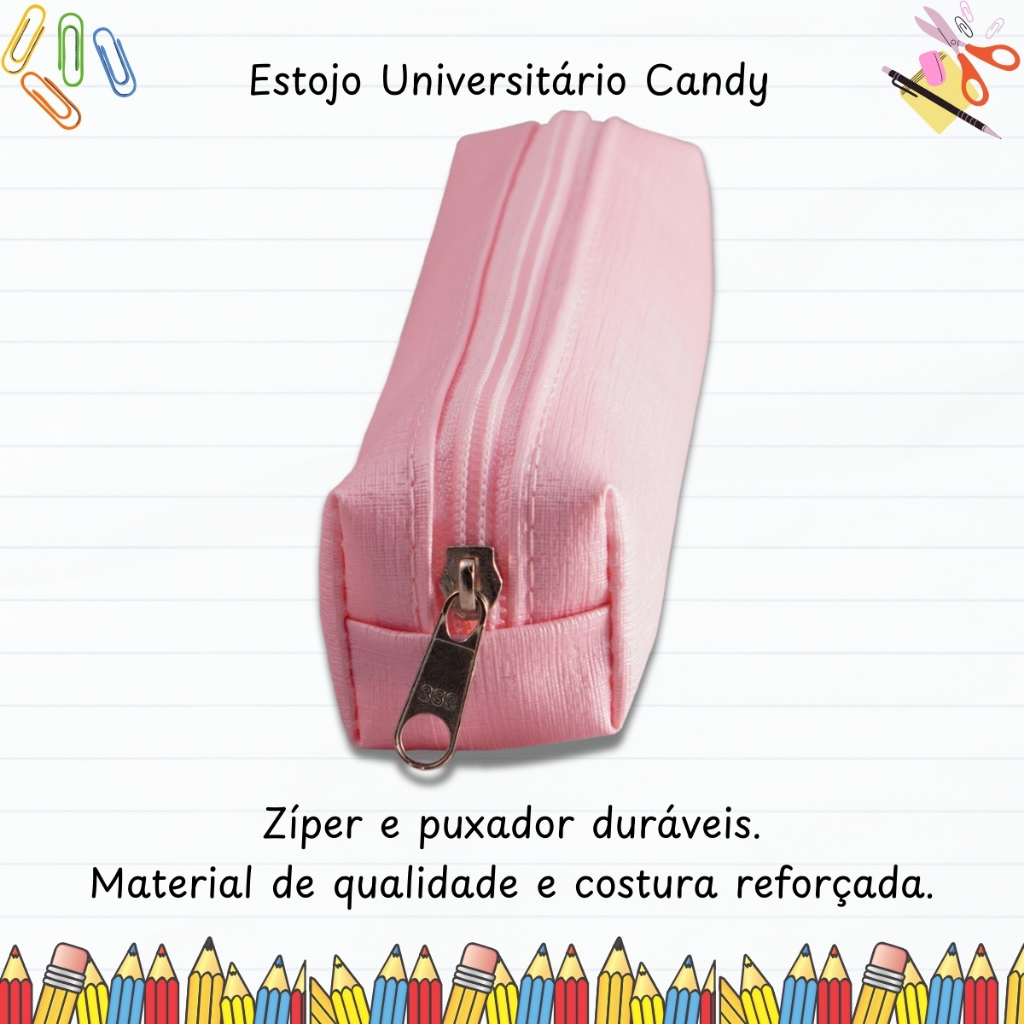 Estojo Escolar Universitário Pequeno Feminino Juvenil 1 Zíper Organizador Sintético Candy 24 Lápis