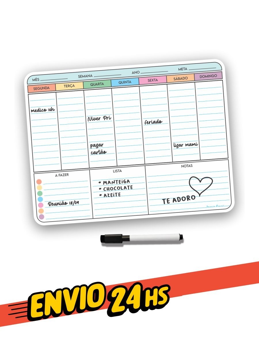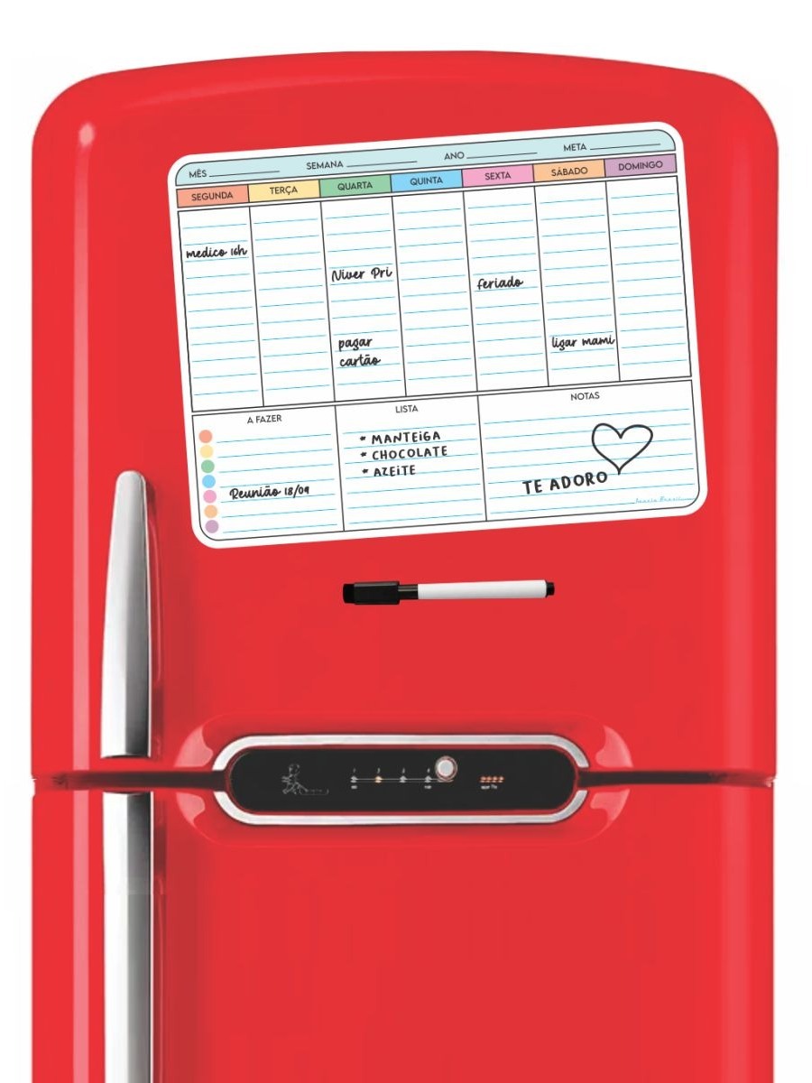 Ímã De Geladeira Porta Recados Anotações Planner Com Caneta