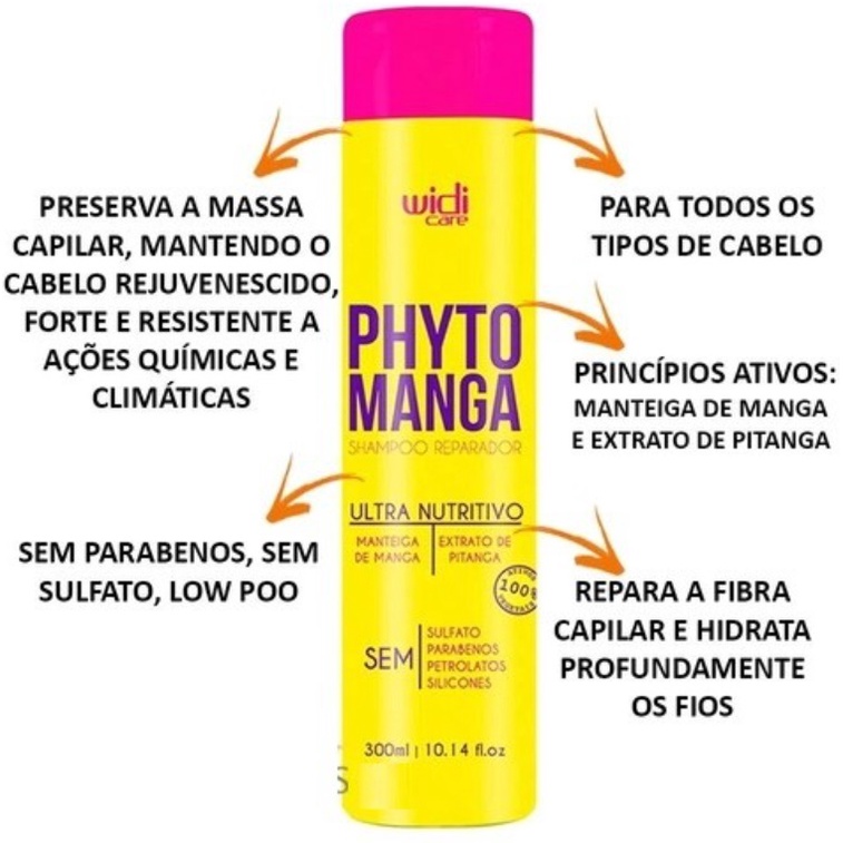 Kit Phyto Manga Shampoo, Condicionador, Máscara, Finalizador Widi Care