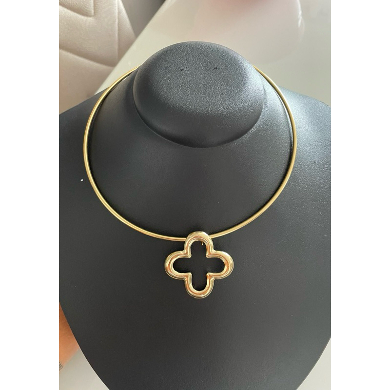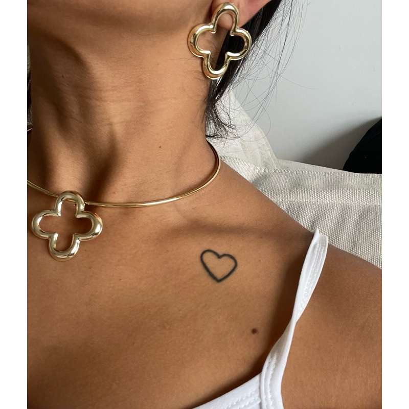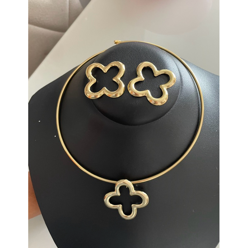 kit Choker Aro Trevo Brinco e Colar