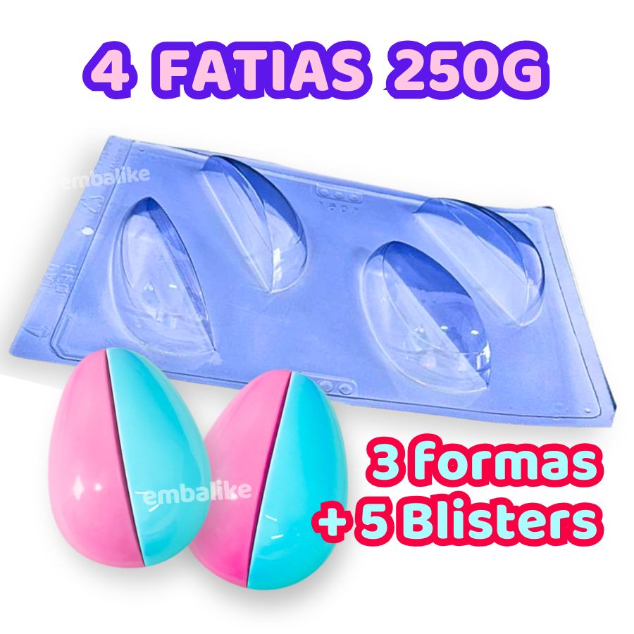 Forma e Blister Ovo Fatias 150g ou 250g Tendência Páscoa 2026 EMBALIKE