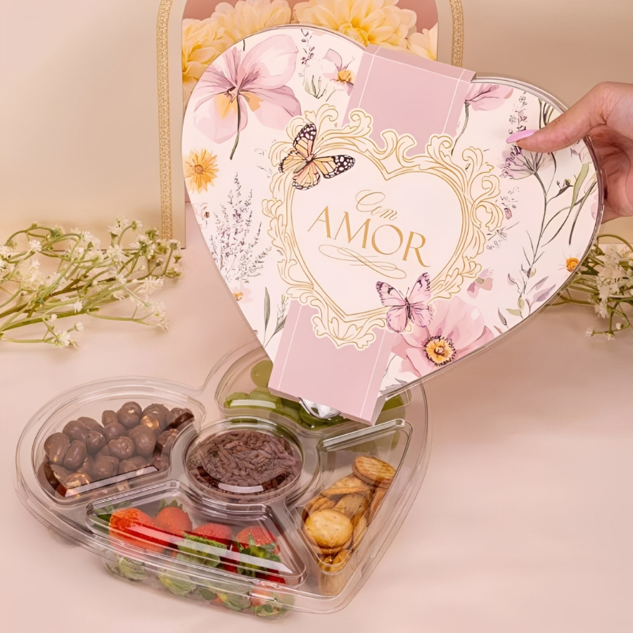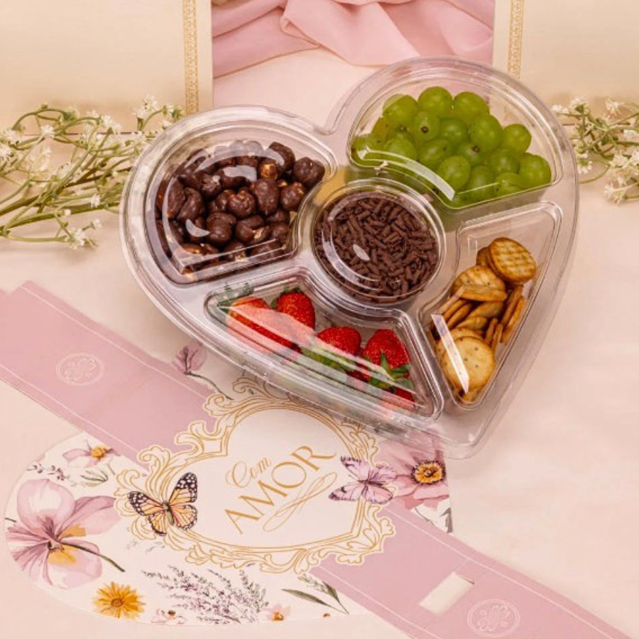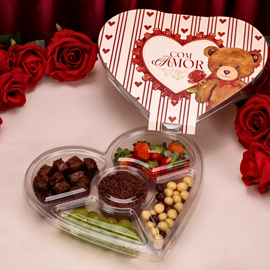 Kit Petisqueira e Cinta Coração P/ Dia das Mães Namorados Embalagem P/ Fondue Presente EMBALIKE