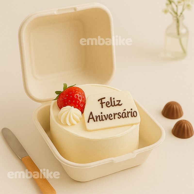 5/25 Embalagens p/ Bentô Cake Mini Bolo Biodegradável 15x15 Confeitaria Hamburgueira Papel EMBALIKE