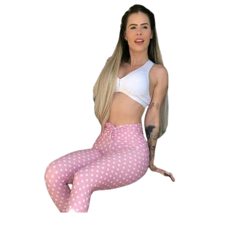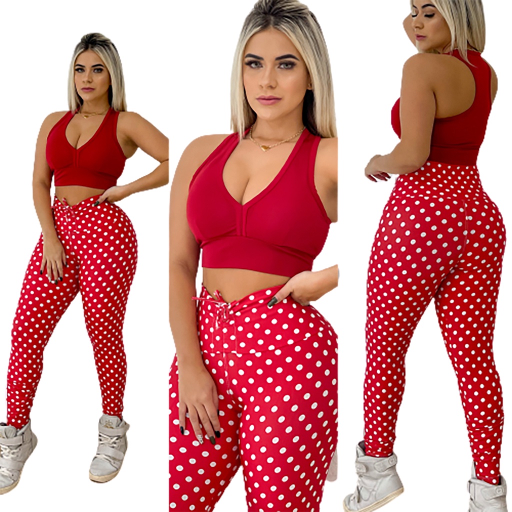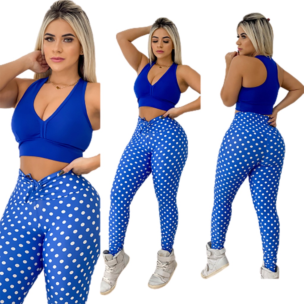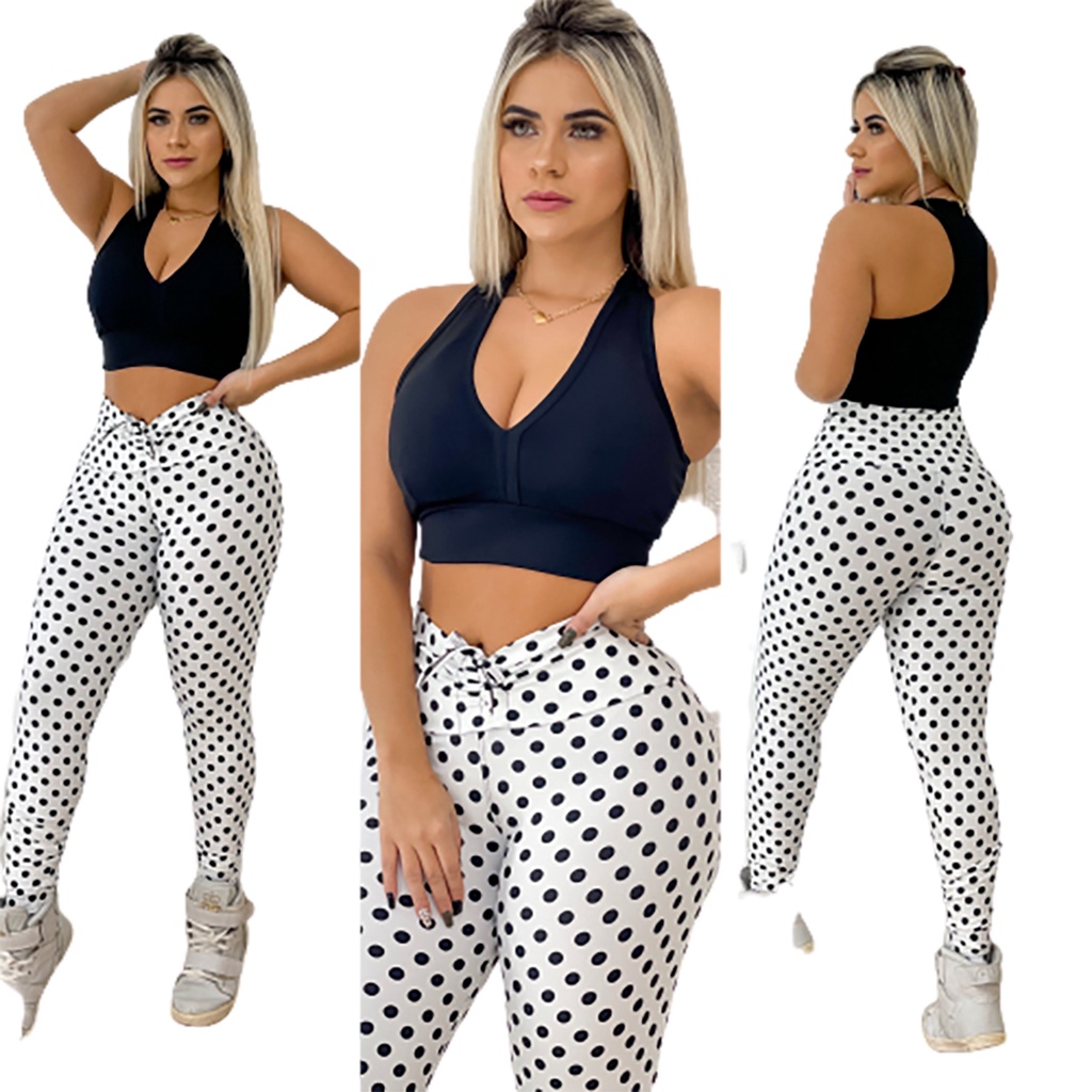 Roupa De Academia Moda Feminina Leg De Cordão + Top Com Bojo Poa Animal Oncinha