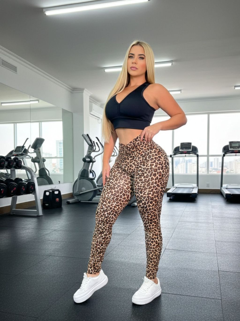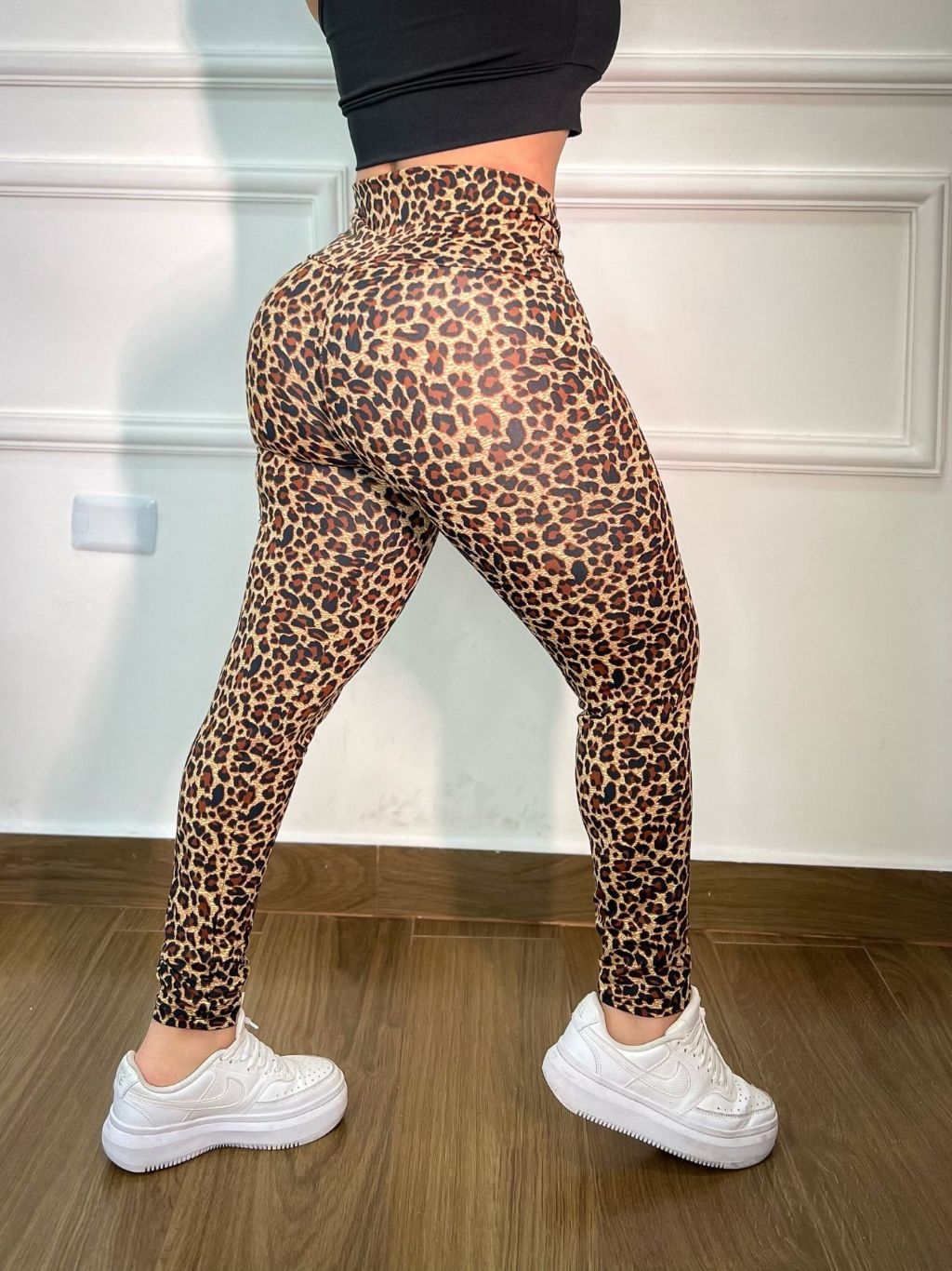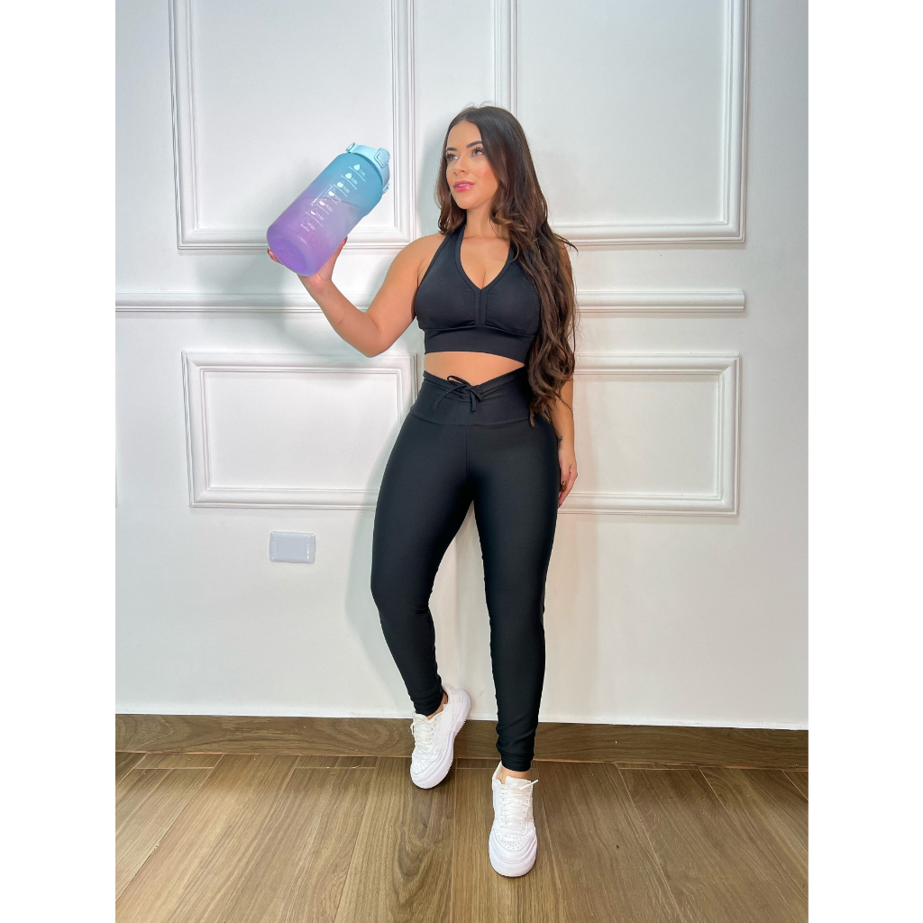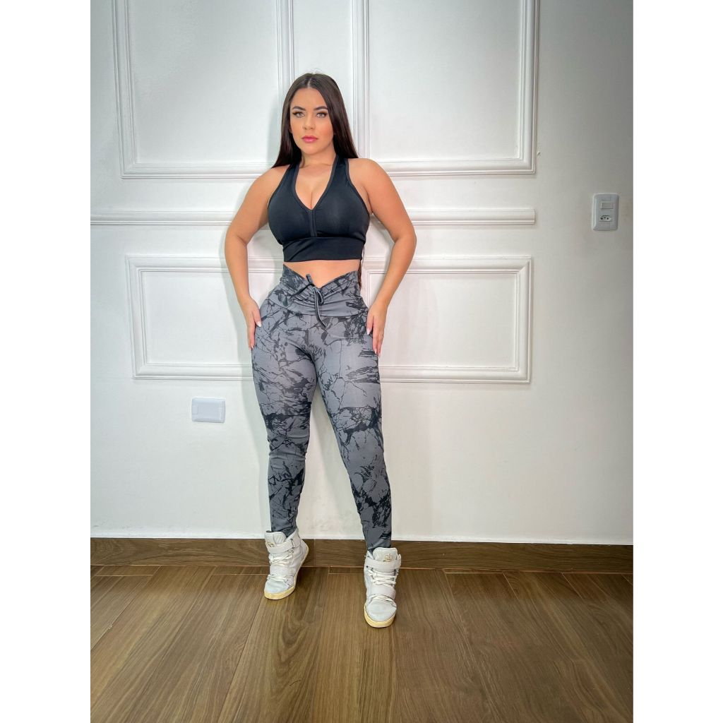 Roupa De Academia Moda Feminina Leg De Cordão + Top Com Bojo Poa Animal Oncinha