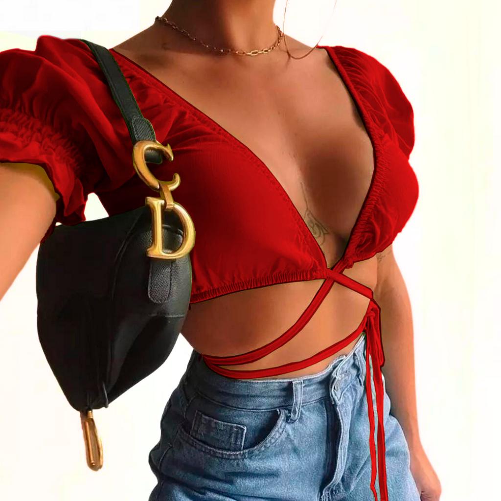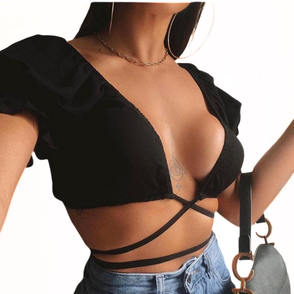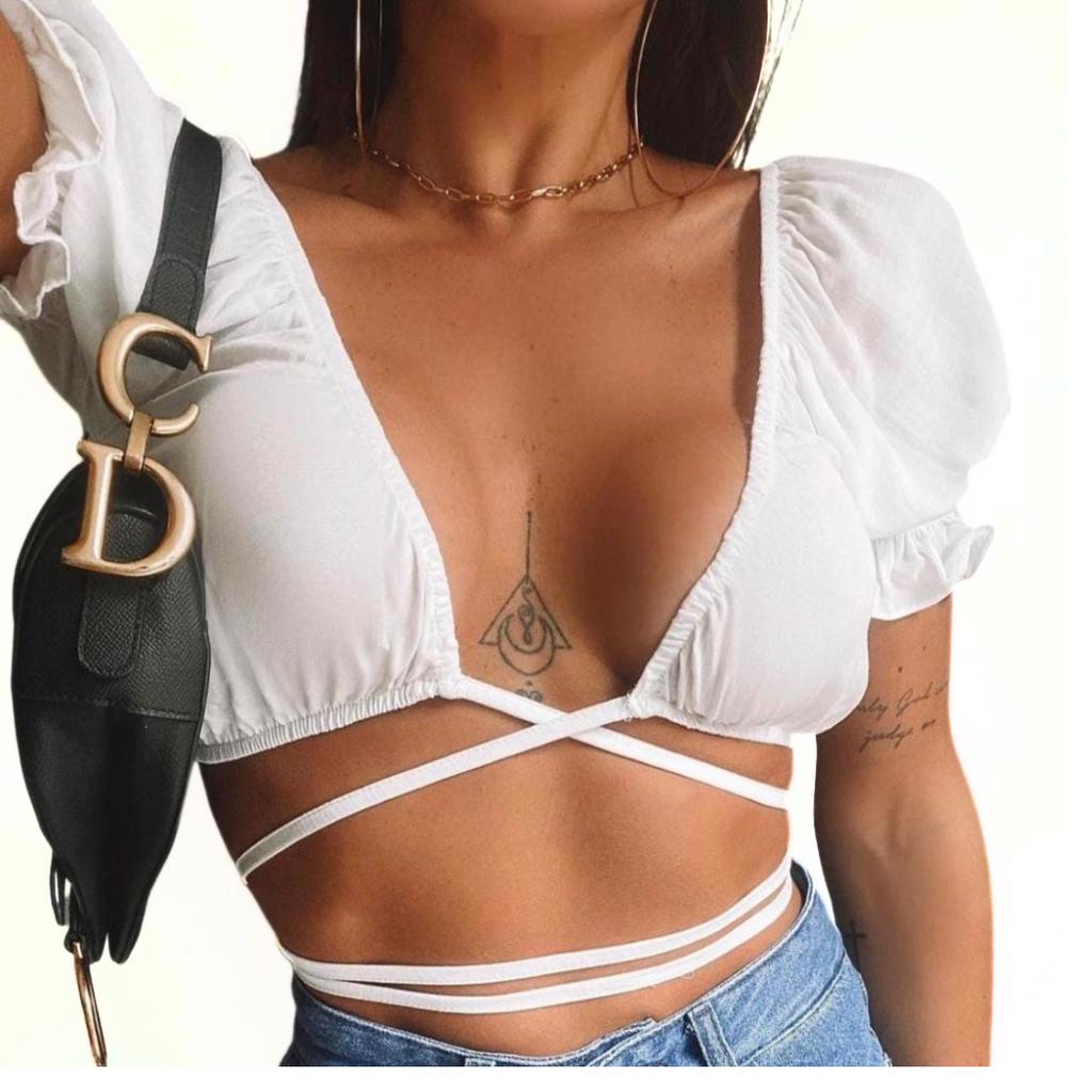 kit 2 Cropped Feminino Amarração Cruzado Transpassado