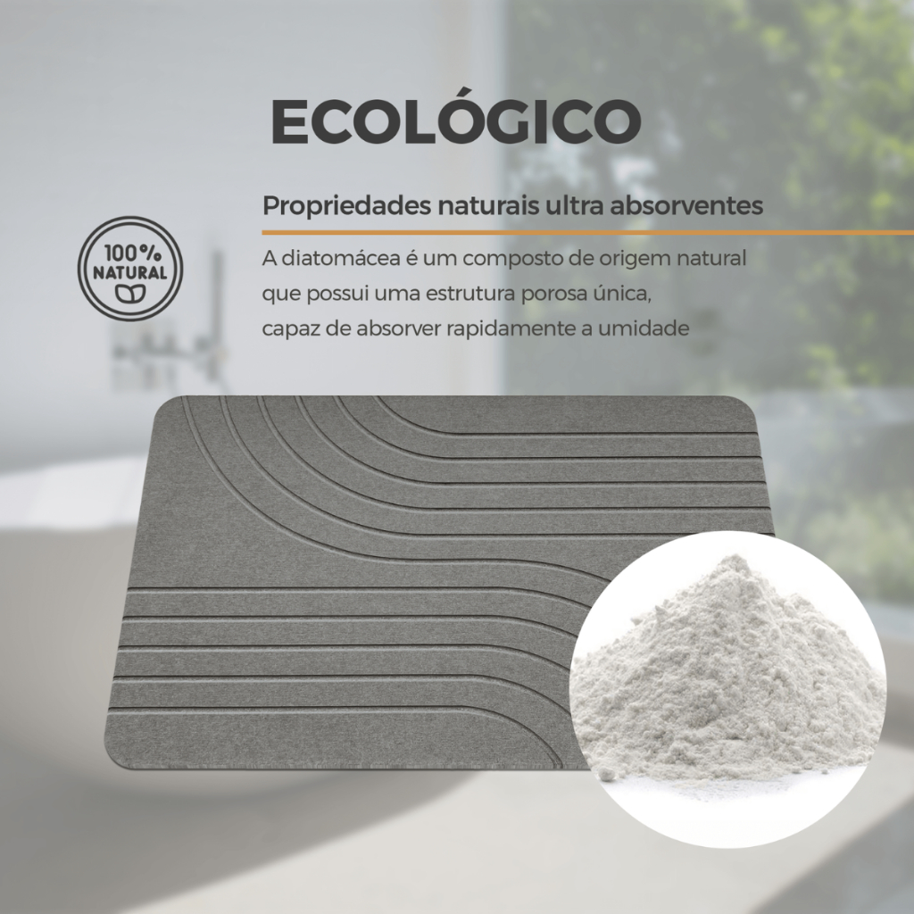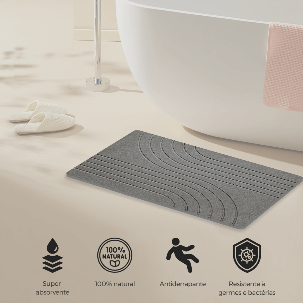 Tapete Banheiro Impermeavel Pedra Diatomacea 60x40cm Absorvente Malha Antiderrapante Secagem Rapida