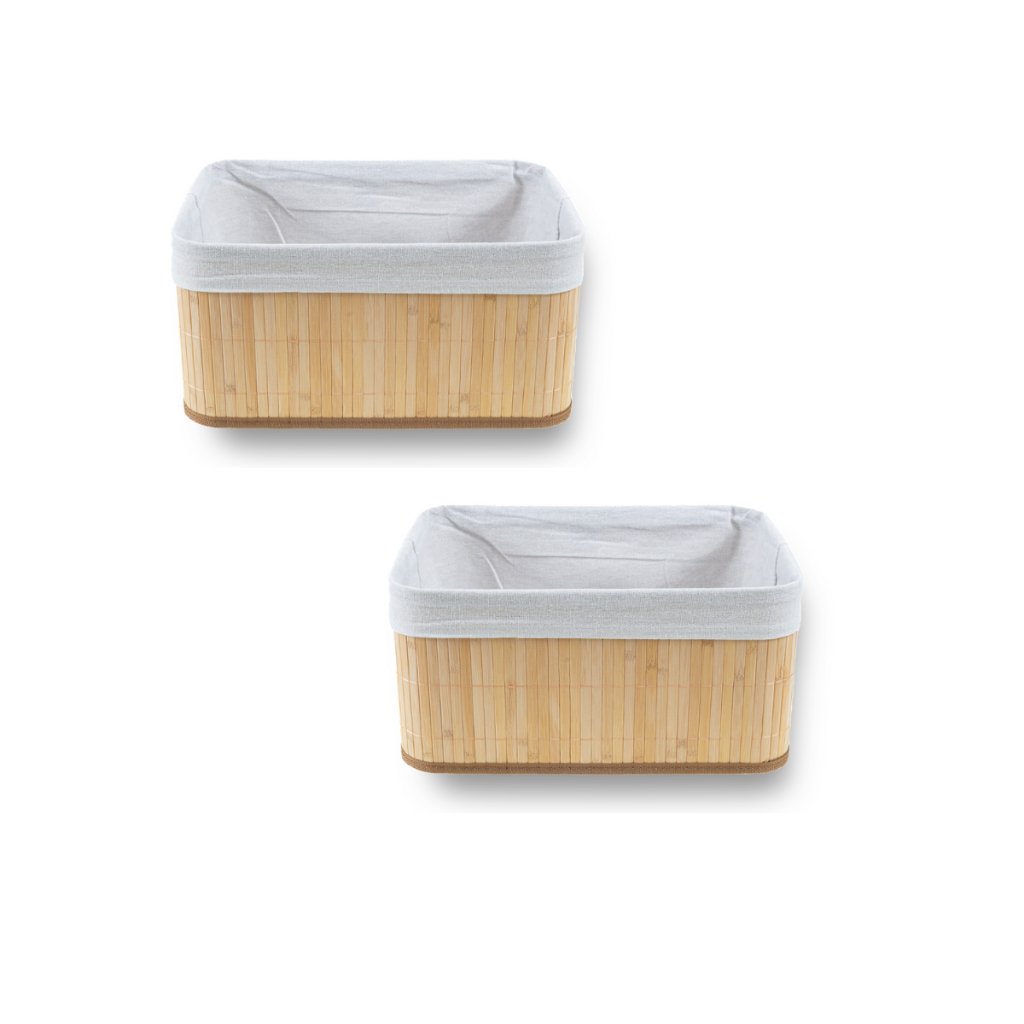 Kit 2 Caixa Cesto Organizador Bambu Natural Revestido com Linho 28 X 18 X 14cm Decoração Organização