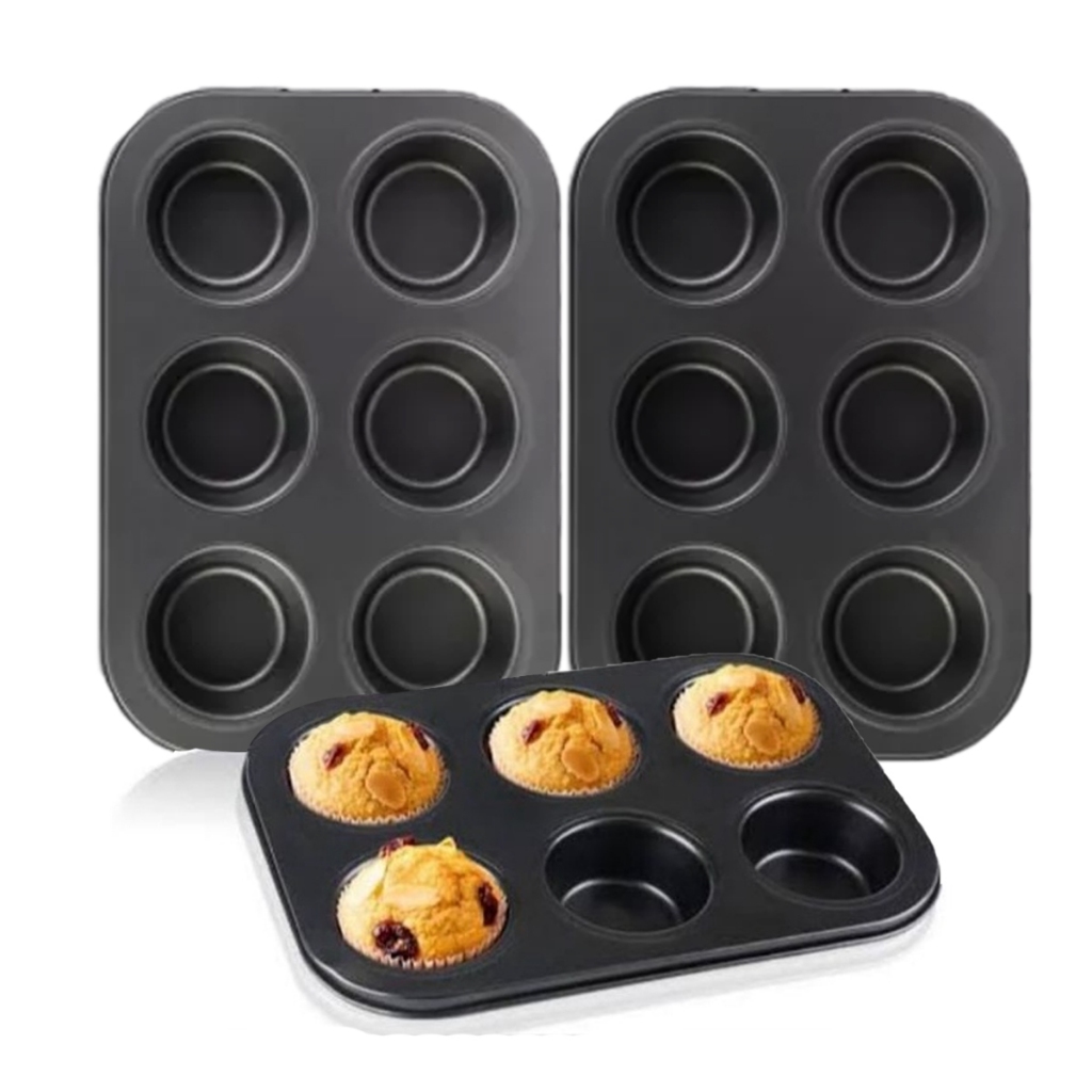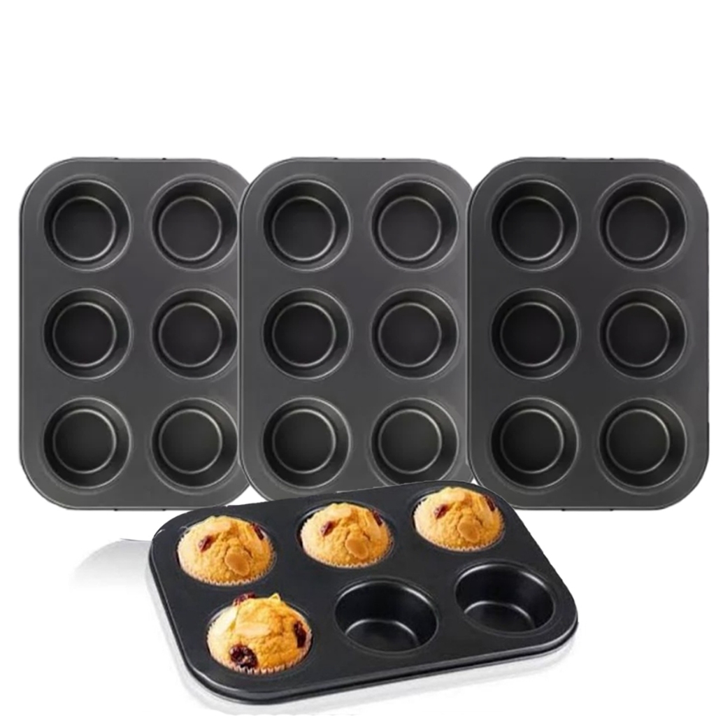 Kit 1 2 3 4 Ou 5 Forma Cupcake Bolinhos Pão de Mel E Queijo Empada 6 Cavidades Antiaderente Pequena 26X18X3 Cm