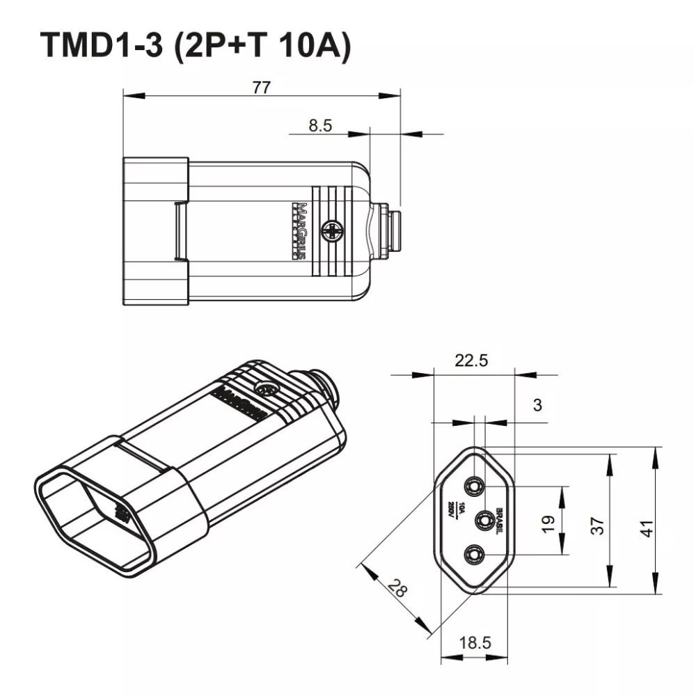 Kit 5 Plug Fêmea Tomada 2p+T 10A Preto 3 pinos Tmd1-2 Margirius