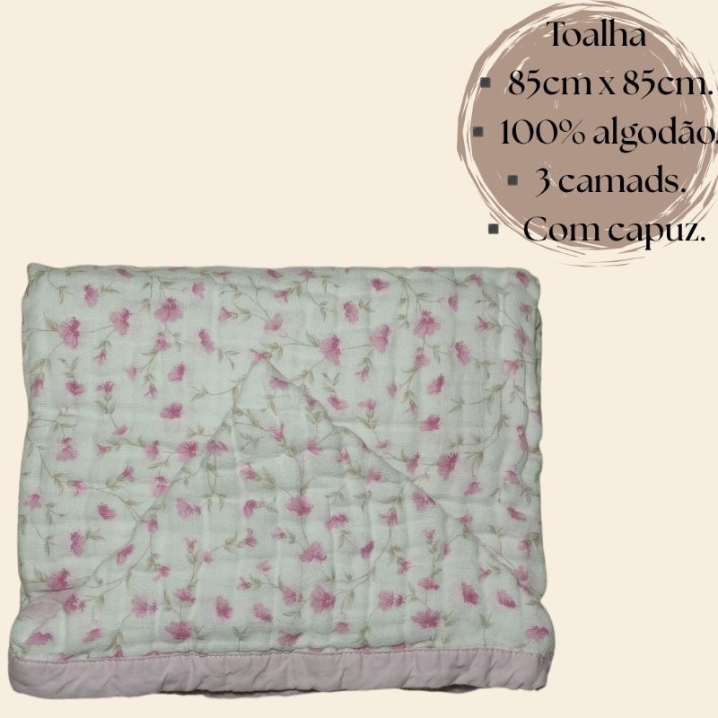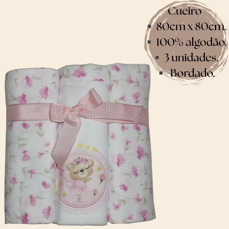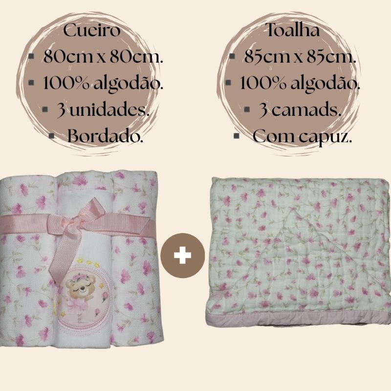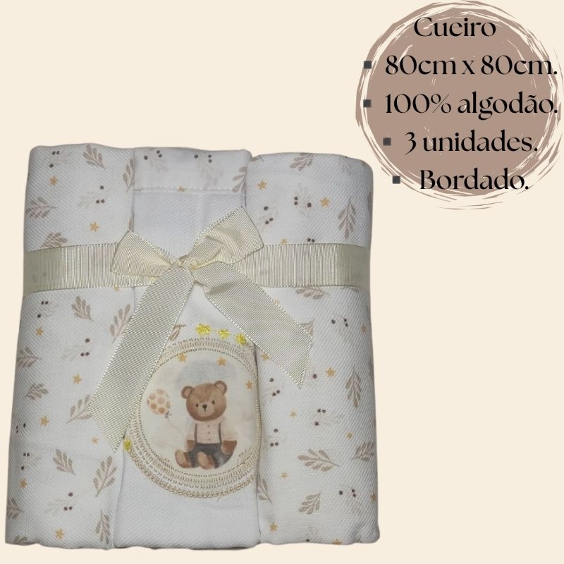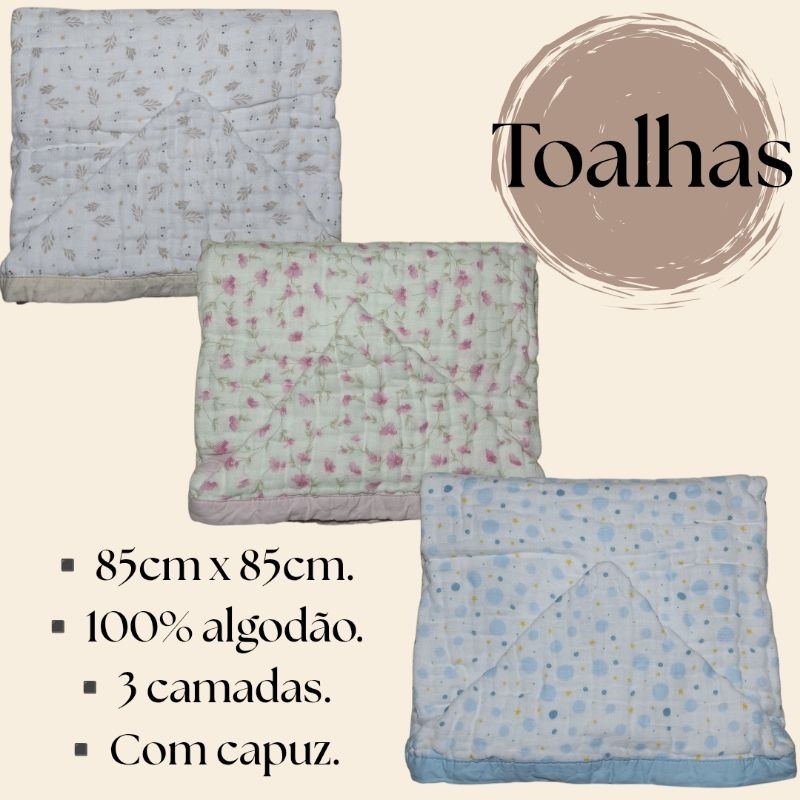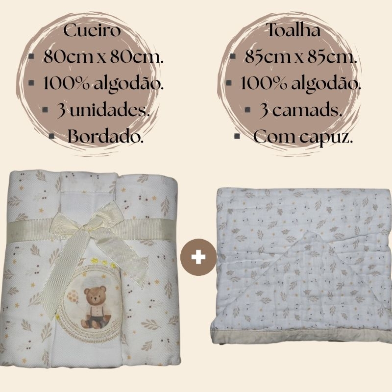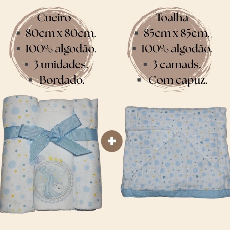 Kit 3 Cueiros de Bebê flanelado 80x80 + Toalha de bebê com capuz 3 camadas tecido soft.