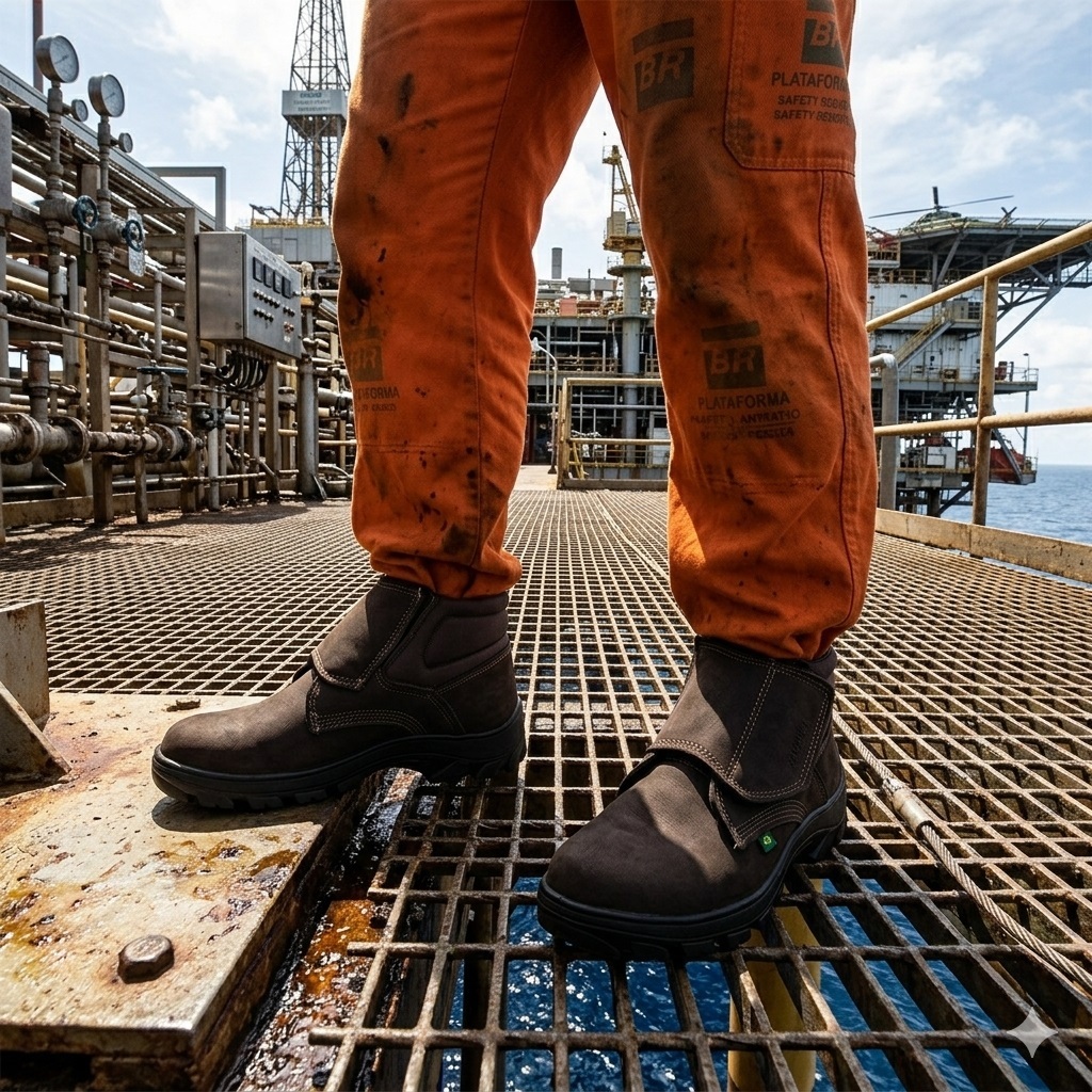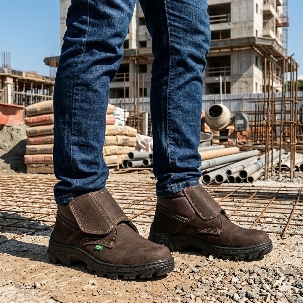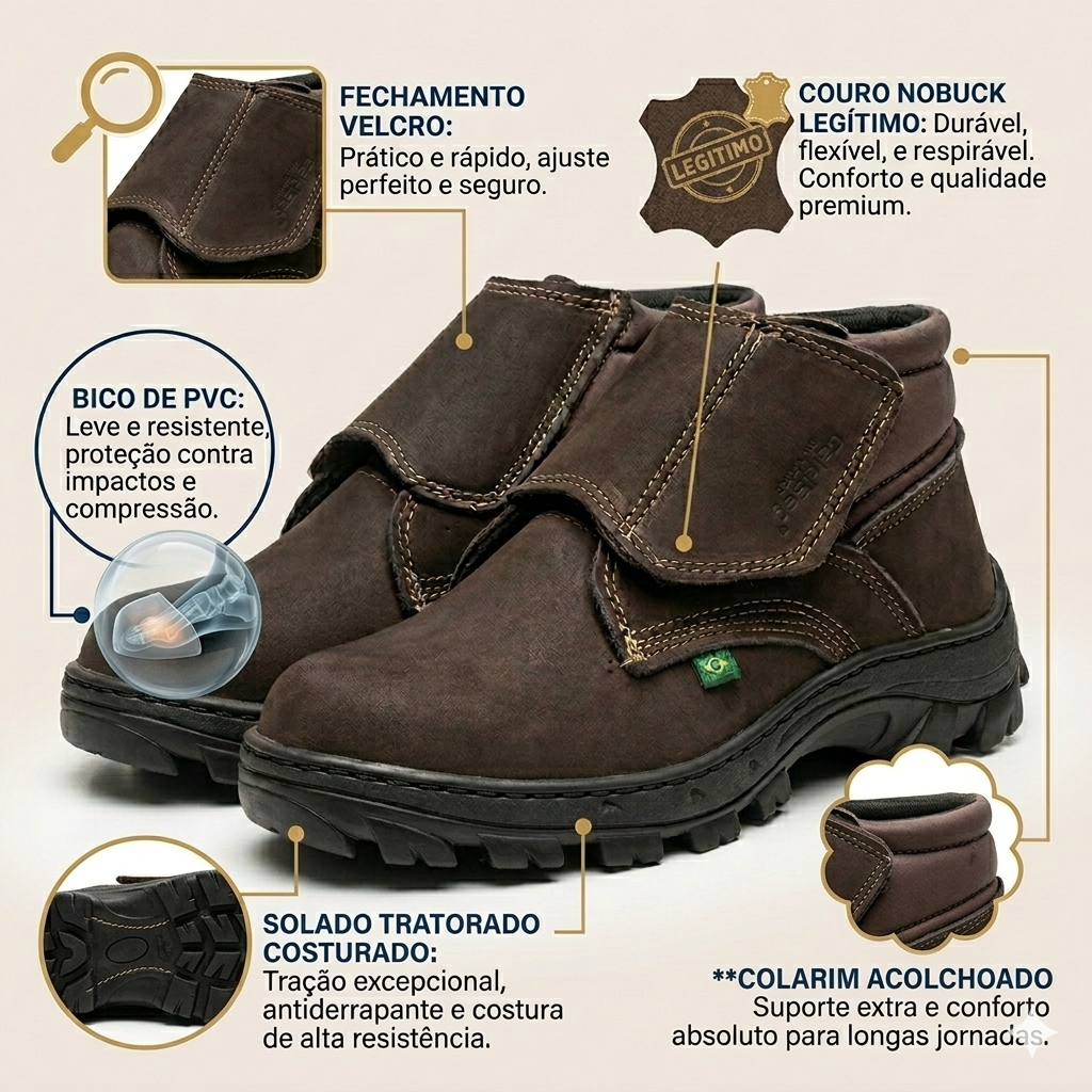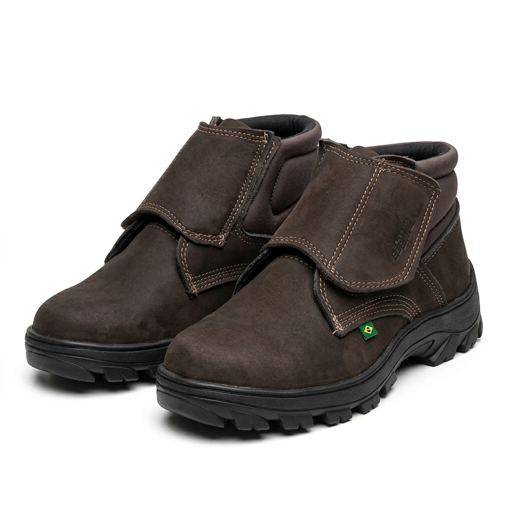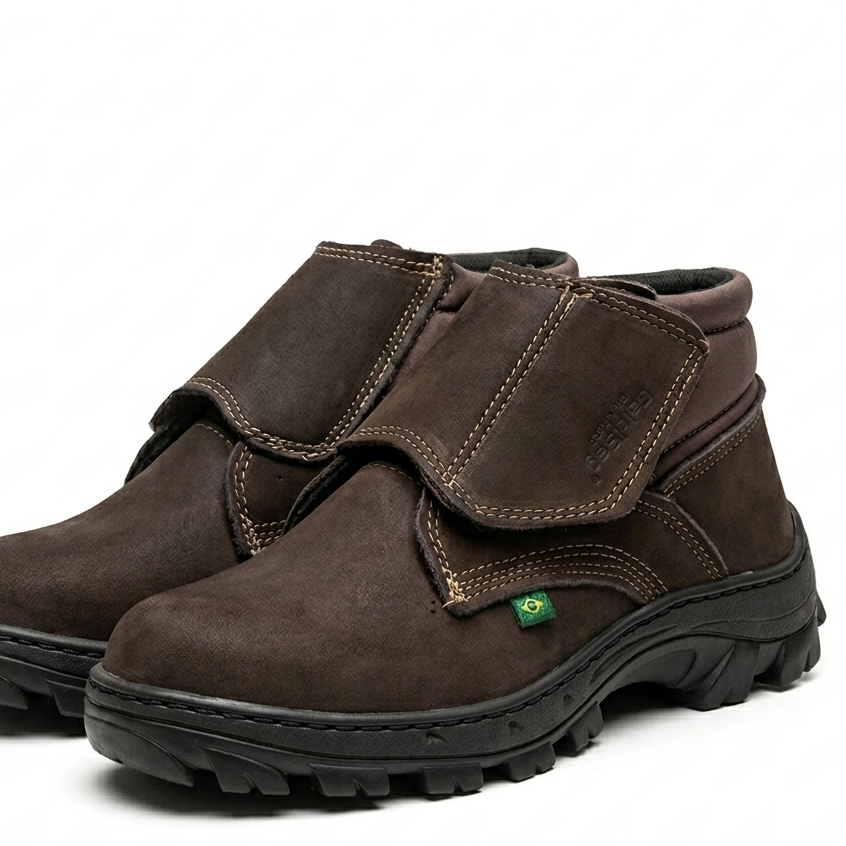 Botina Bota Profissional em Couro Legítimo com Velcro Reforçada e Confortável para Trabalho Resistente