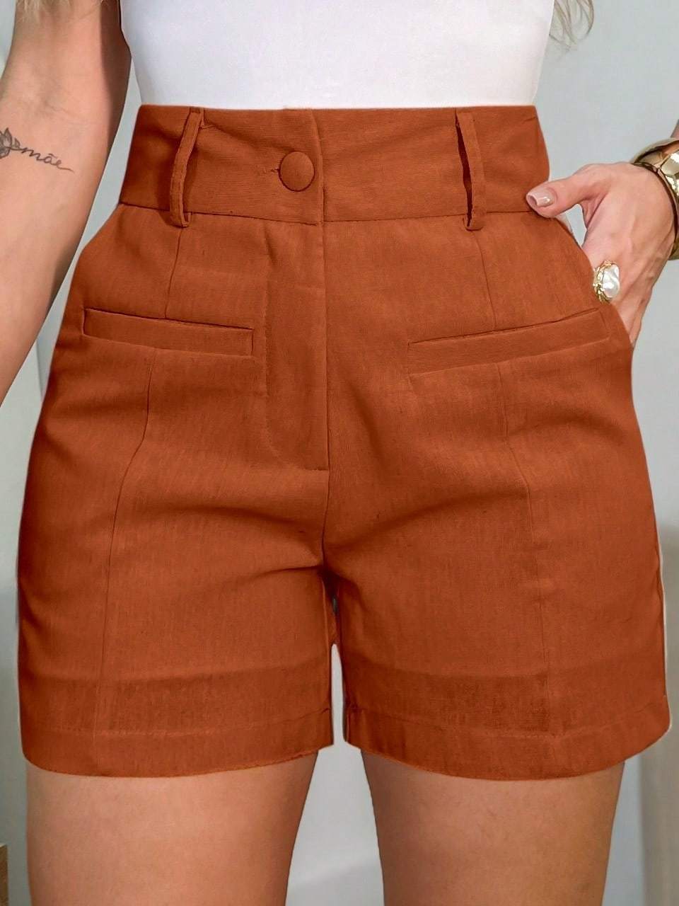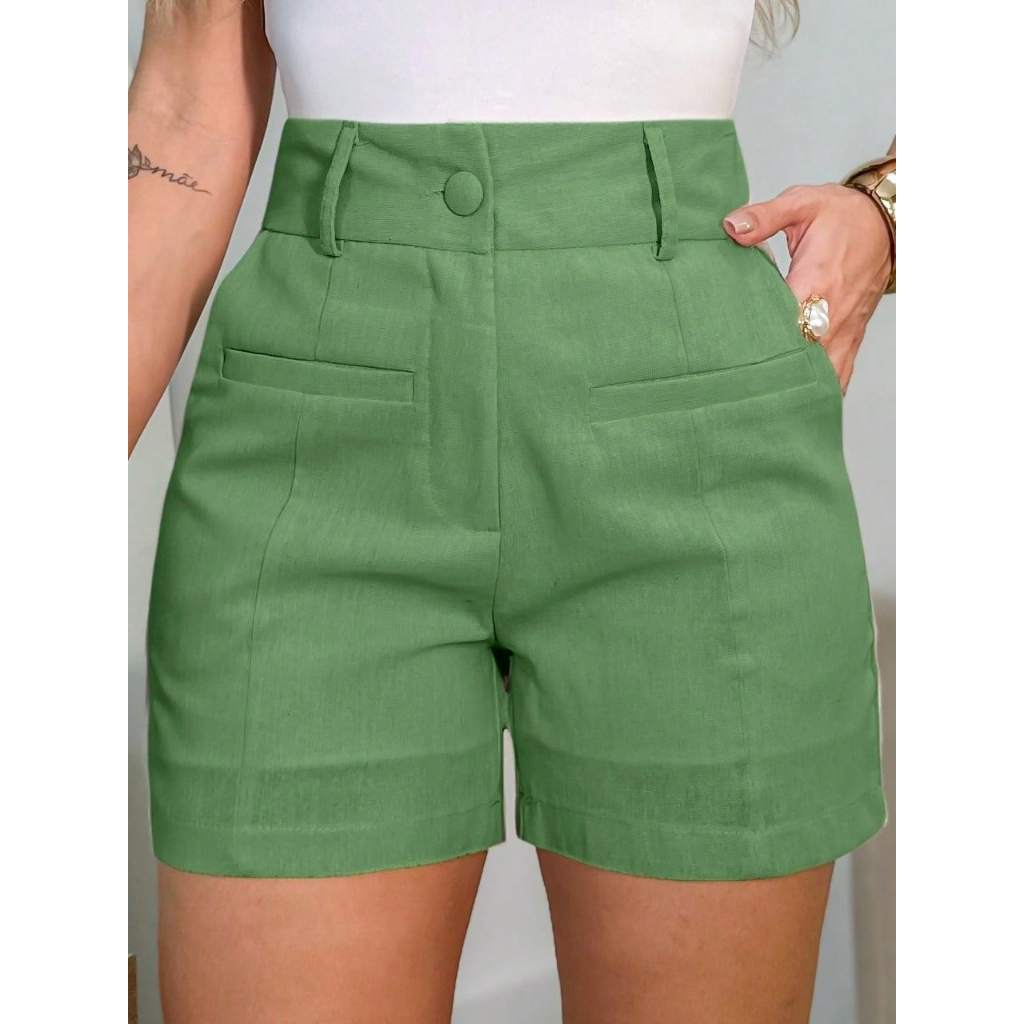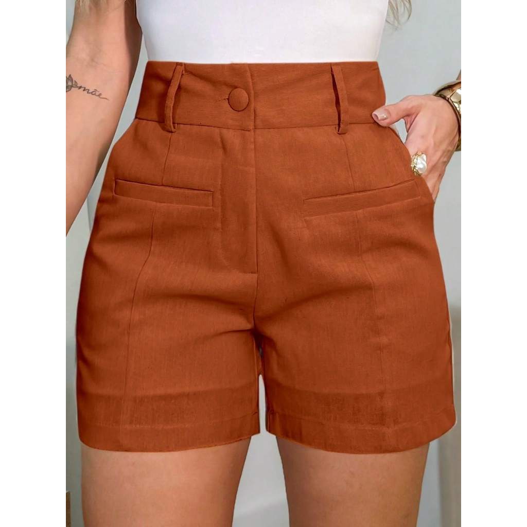 EMILI Short Feminino em Viscolinho Linho – Elegância Minimalista para o Dia a Dia-S870