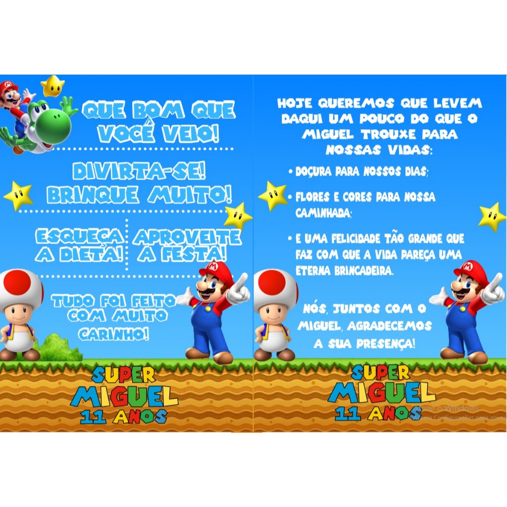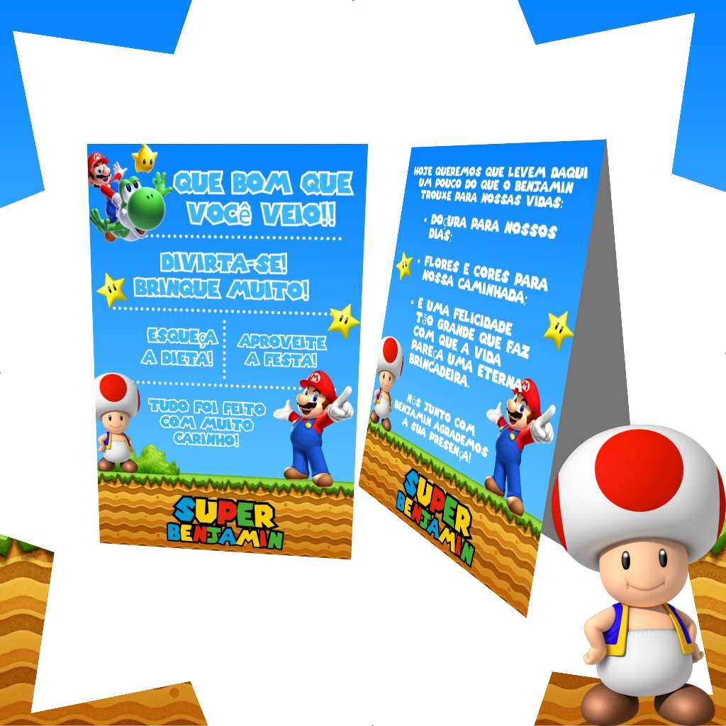 Plaquinha de agradecimento centro de mesa /cartao de agradecimento de mesa MARIO BROS
