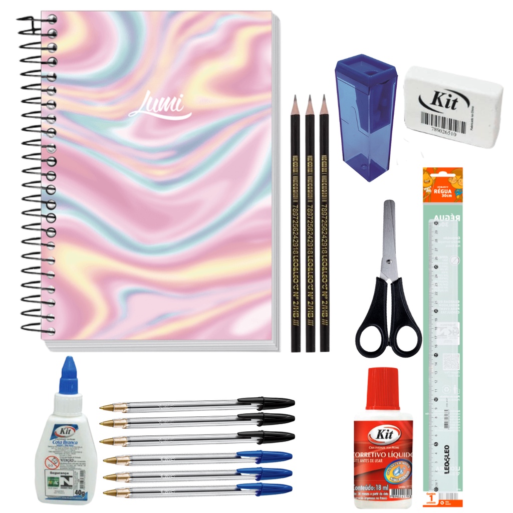 combo material escolar ensino médio caderno 10 matérias canetas volta as aulas lista de material