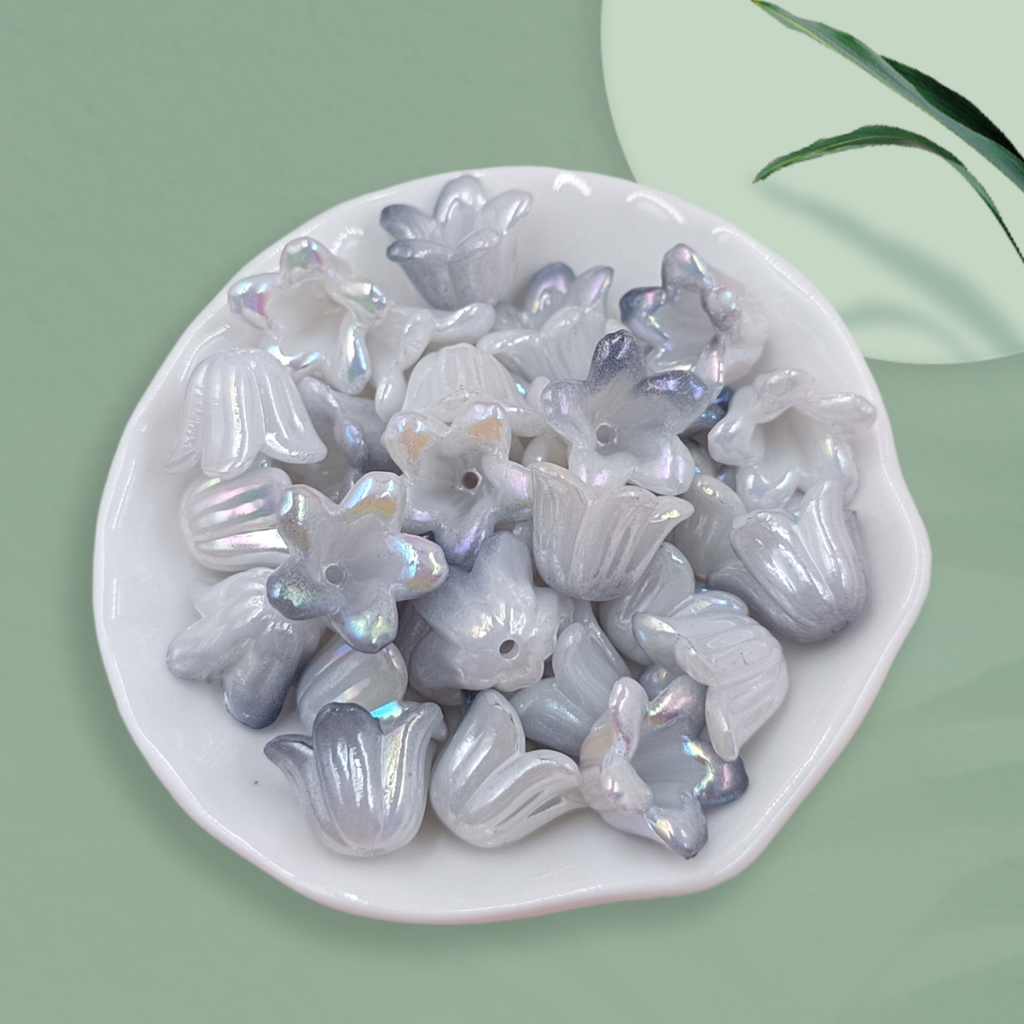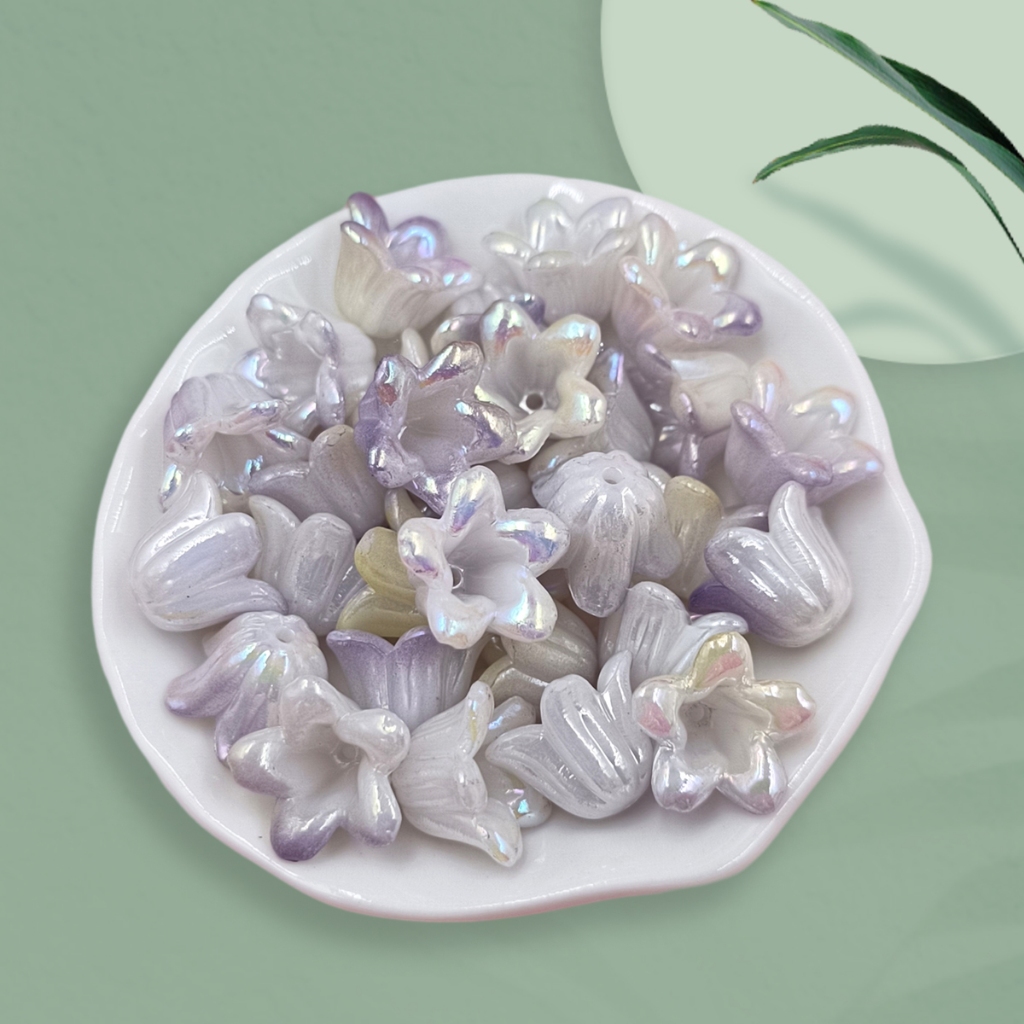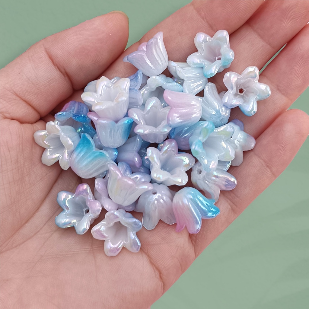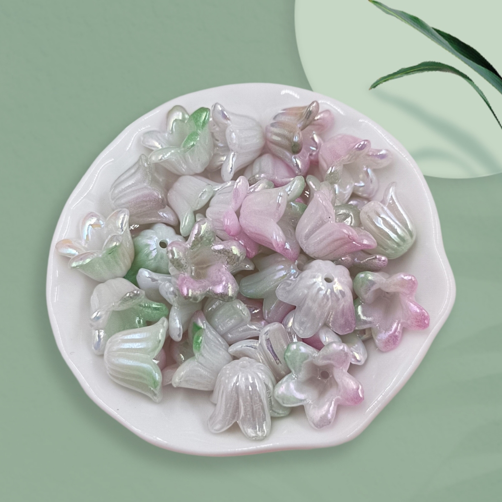 30pcs Creative Plated Color Gradient Lily Do Vale Loose Beads 11x15mm Flower Receptáculo De Flores Brincos De Bricolage Acessórios Para Fazer Jóias