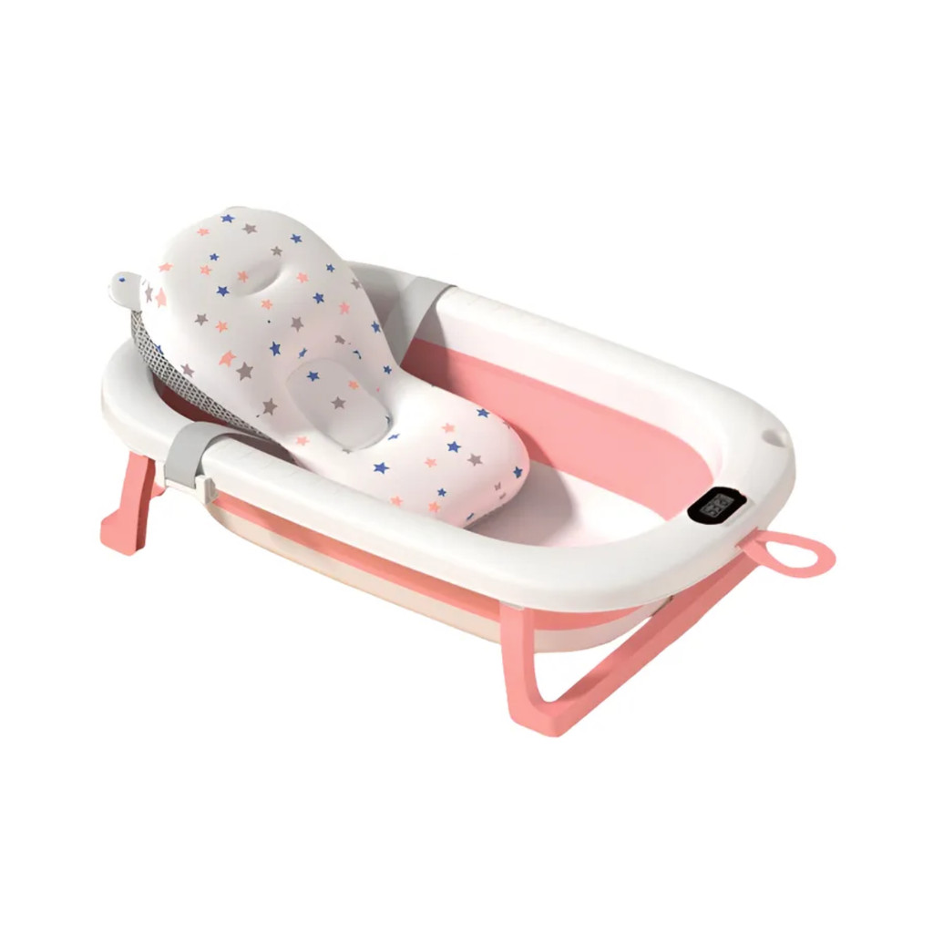 Banheira Bebê Dobrável Infantil Confortável Segura Com Termômetro Portátil Com Almofada De Banho WING