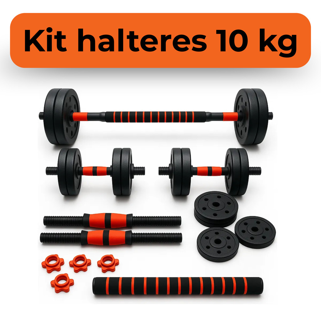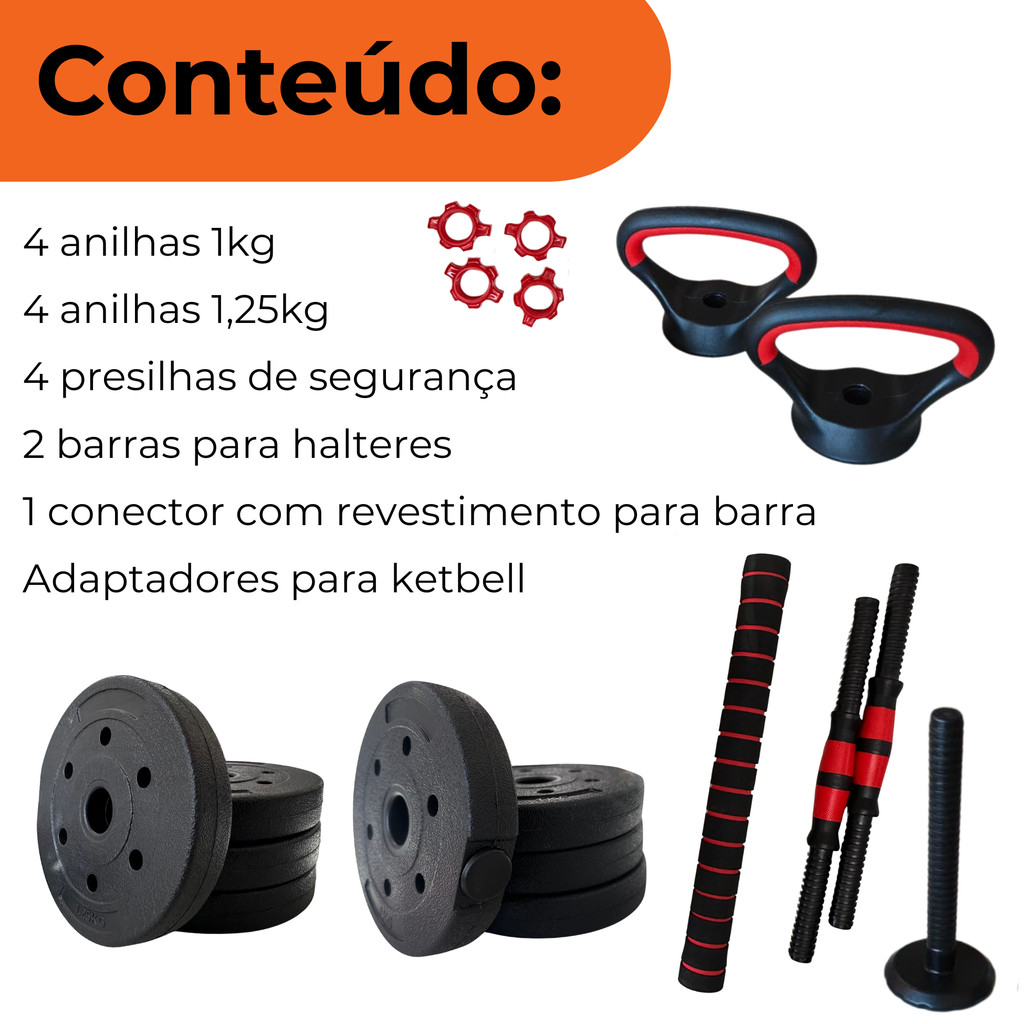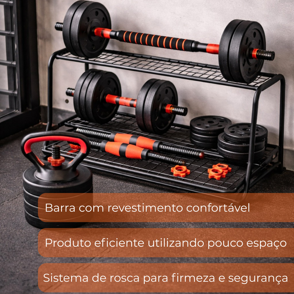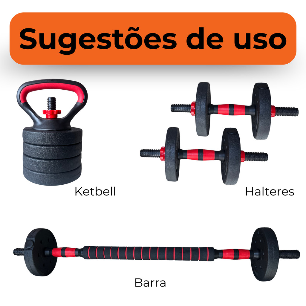 Kit Halteres 6 Em 1 Musculação Funcional Barra Supino Kettlebell 10/15/20kg Wing