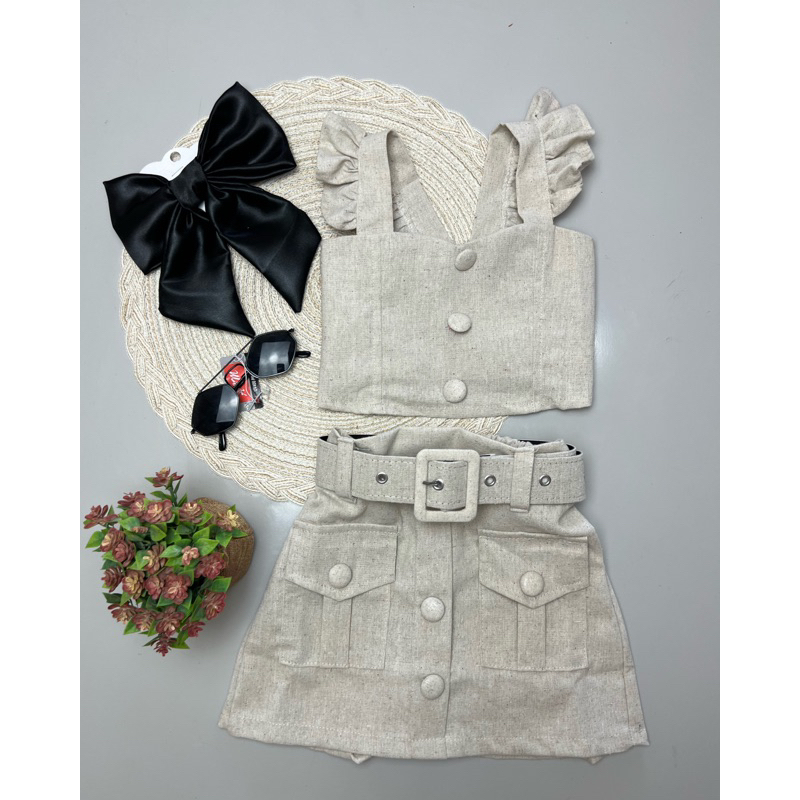conjunto infantil 2 peças em linho roupa infantil para menina roupa de criança arrumada