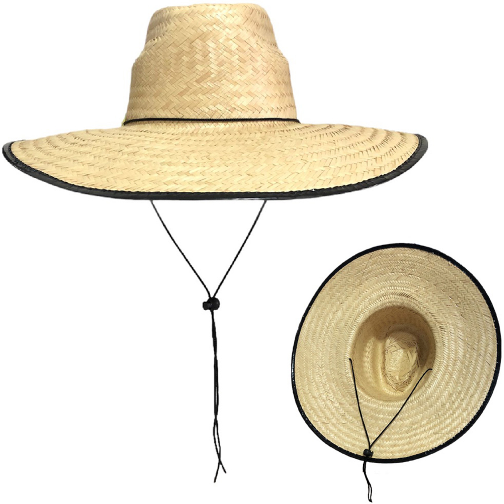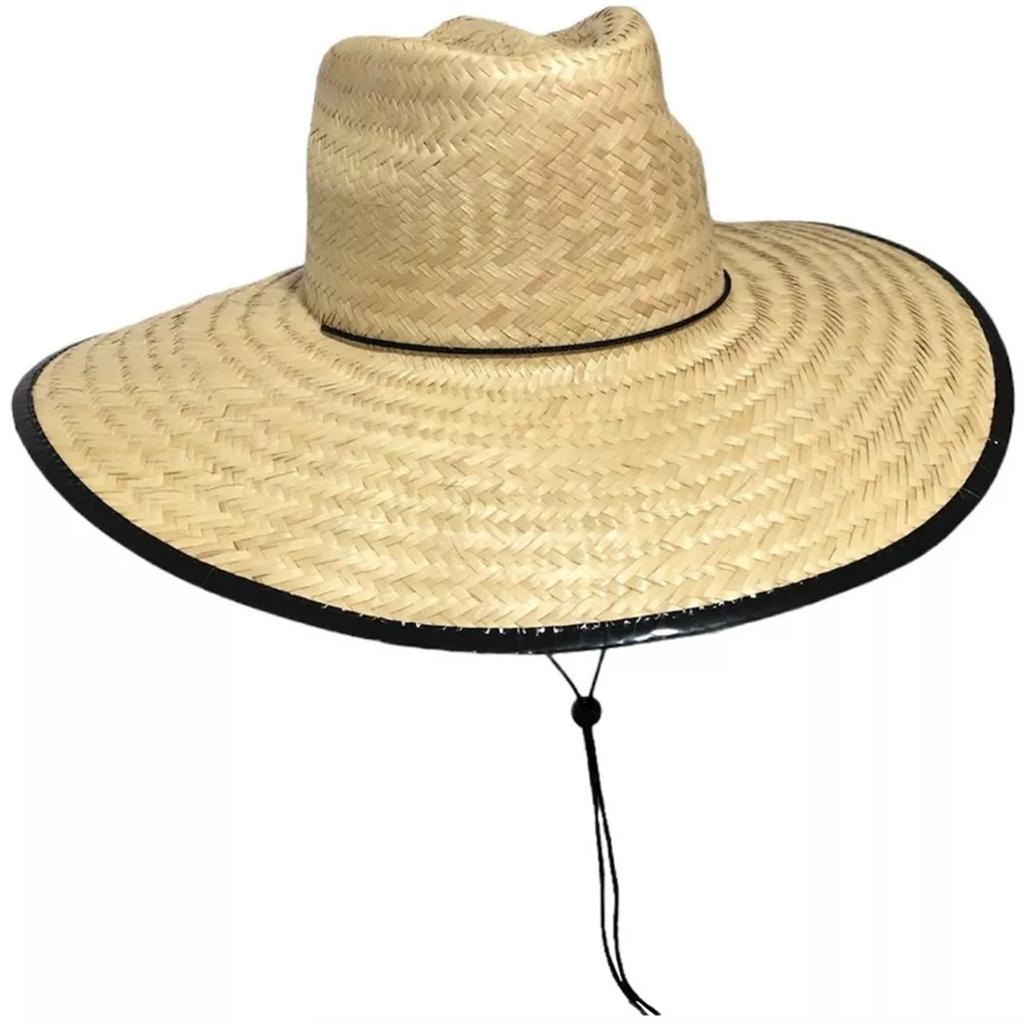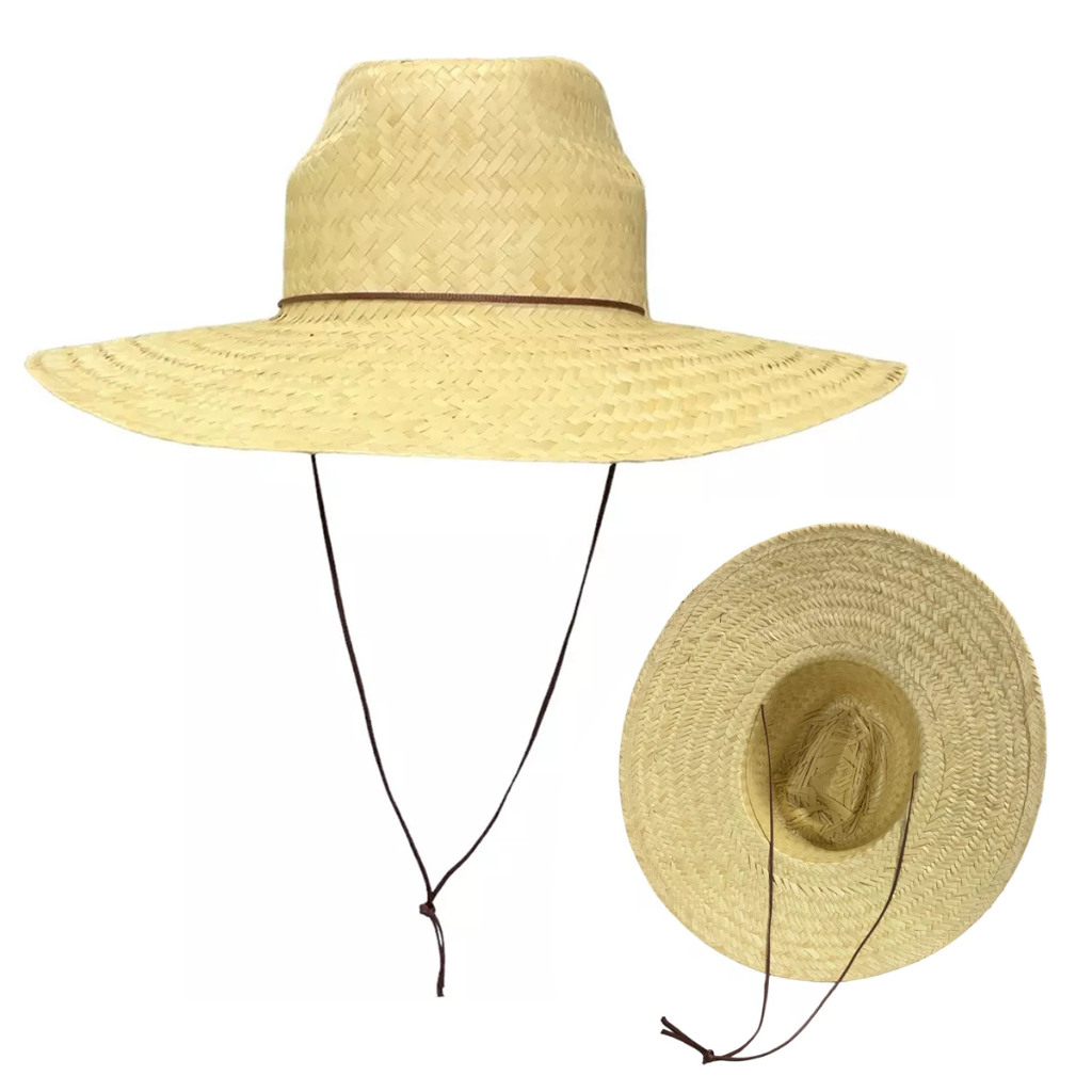 Chapéu De Praia Surf Palha Natural Com Cordão Sombreiro Verão Nacional
