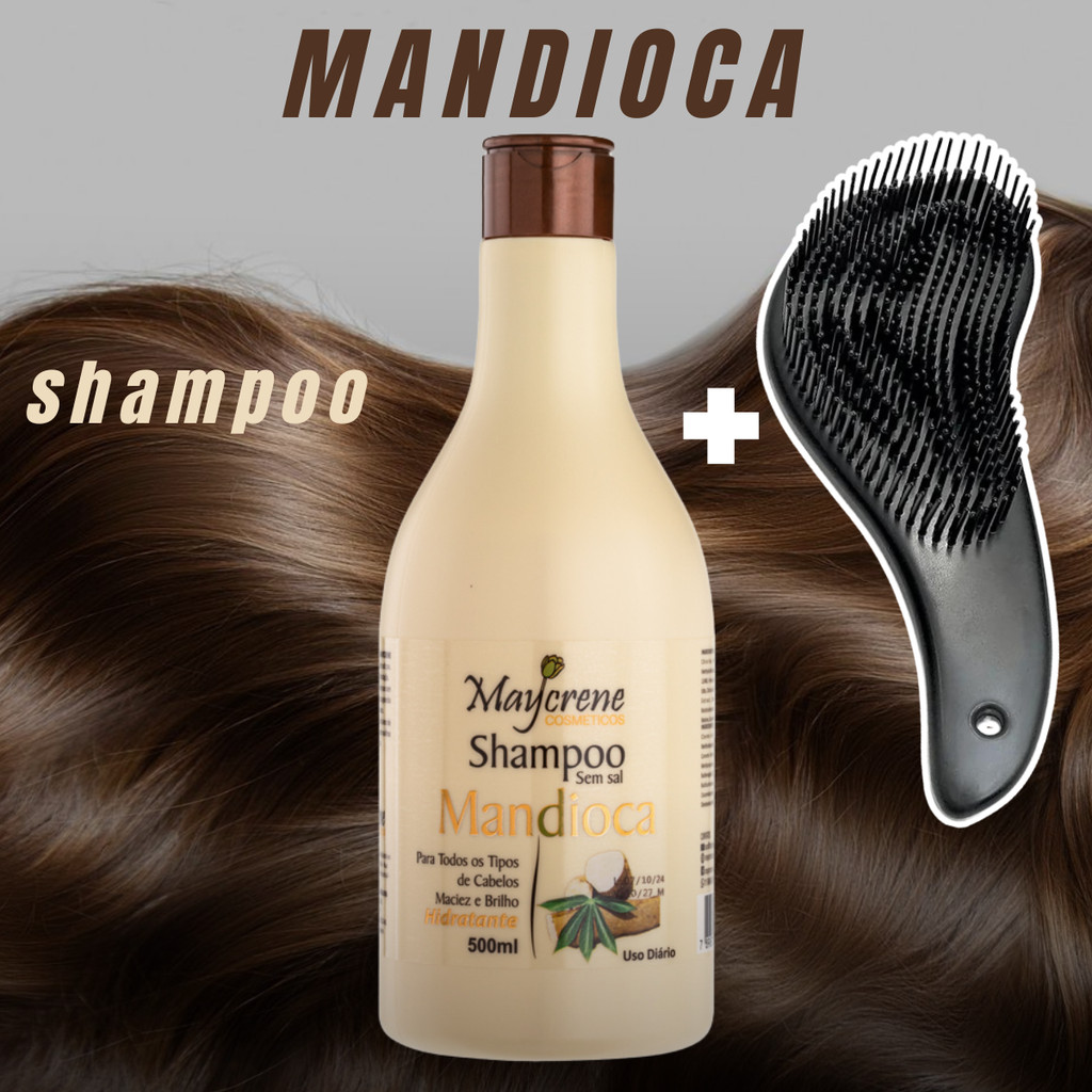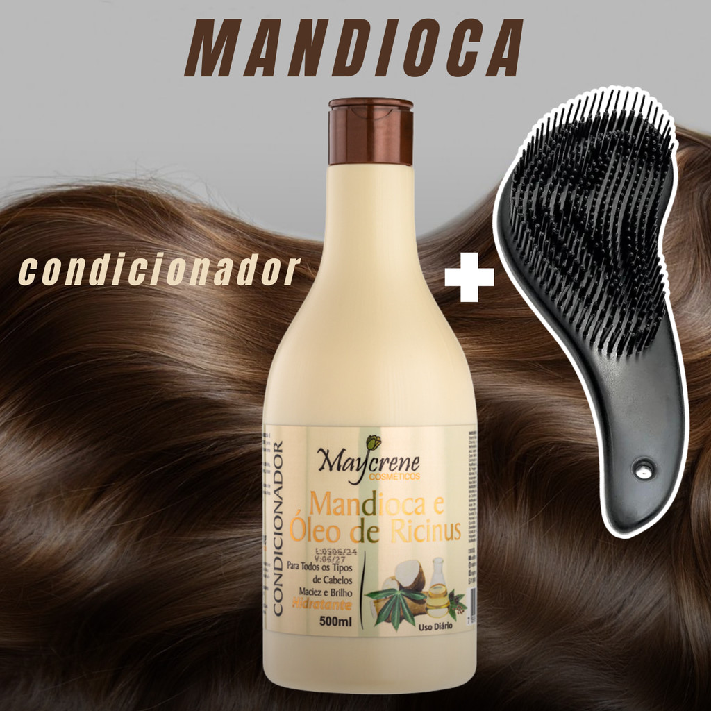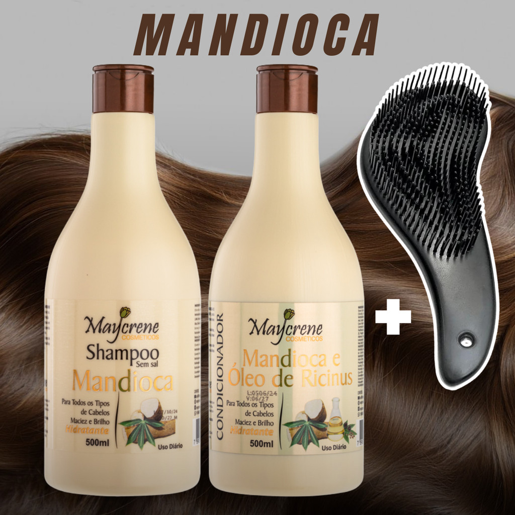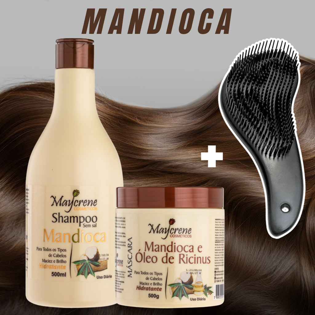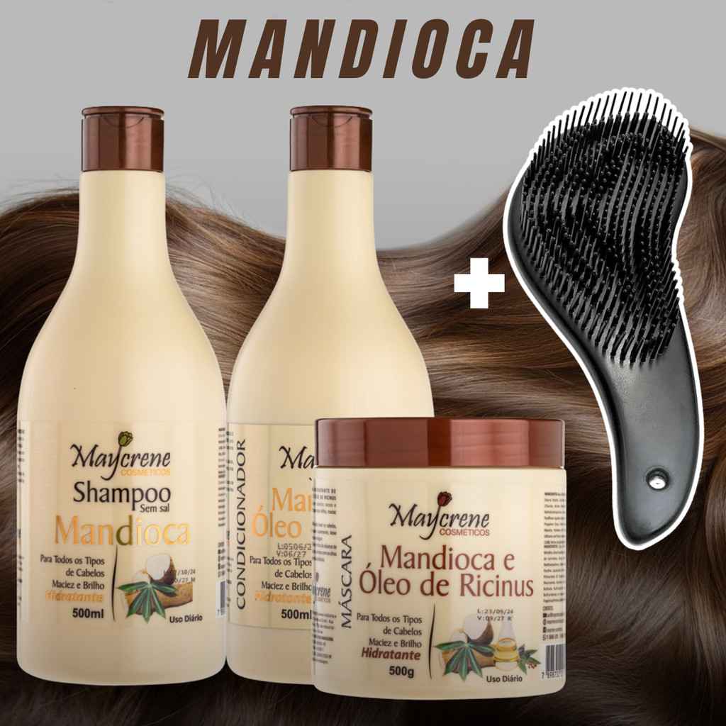 Kit Mandioca Shampoo Condicionador E Máscara + Escova Mágica 500ml Maycrene