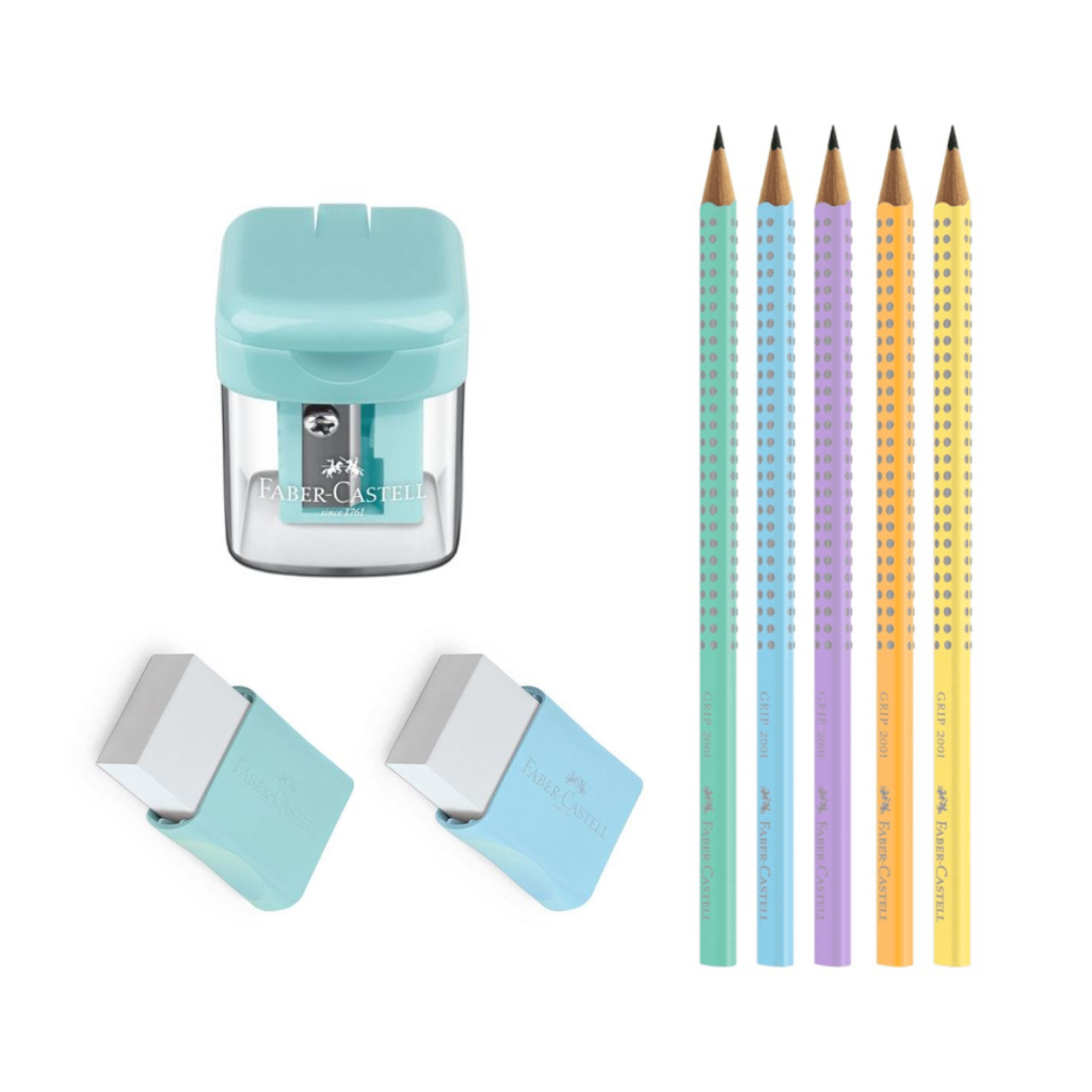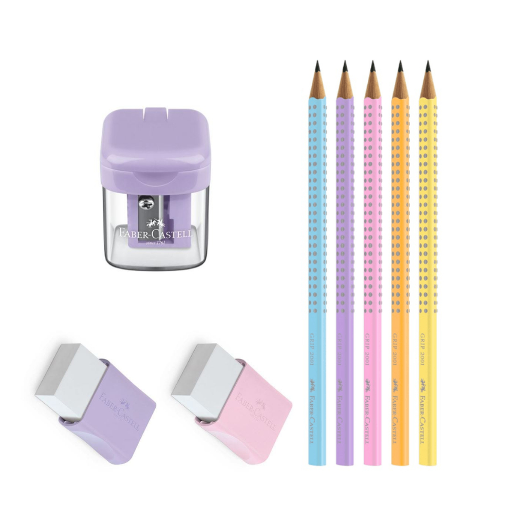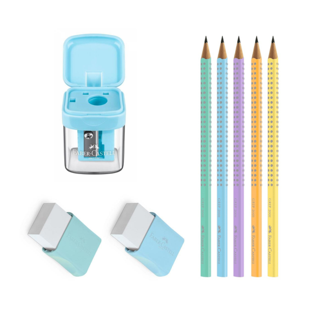 Kit 5 Lápis Pastel Grafite Faber + 2 Borrachas + Apontador