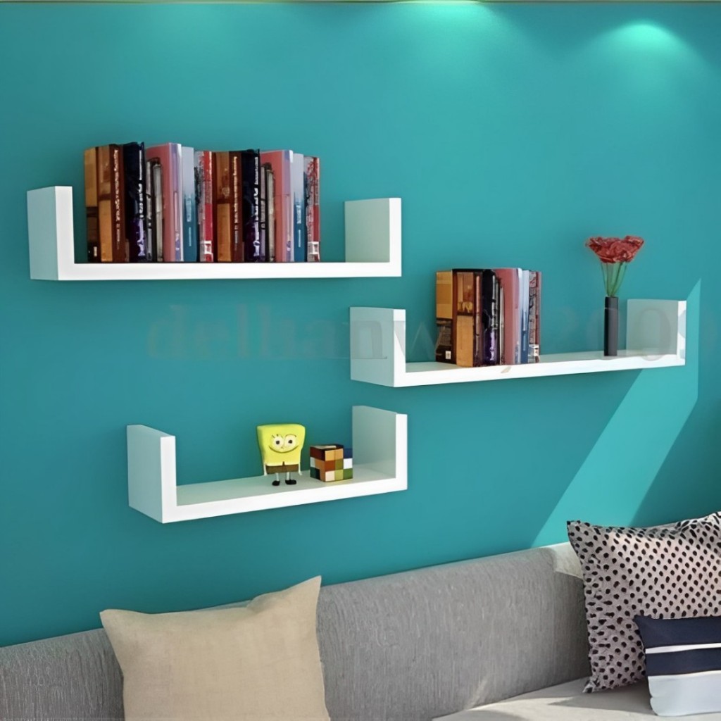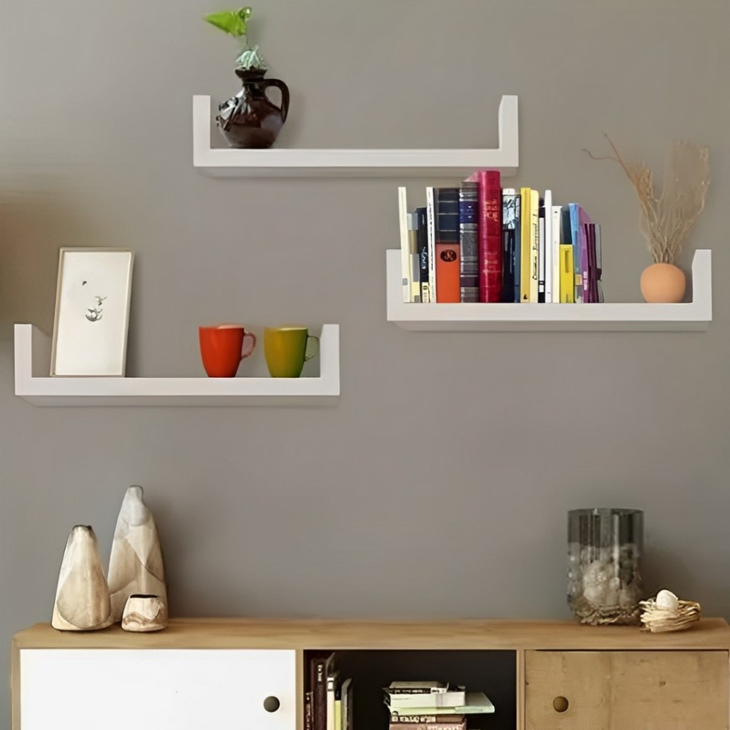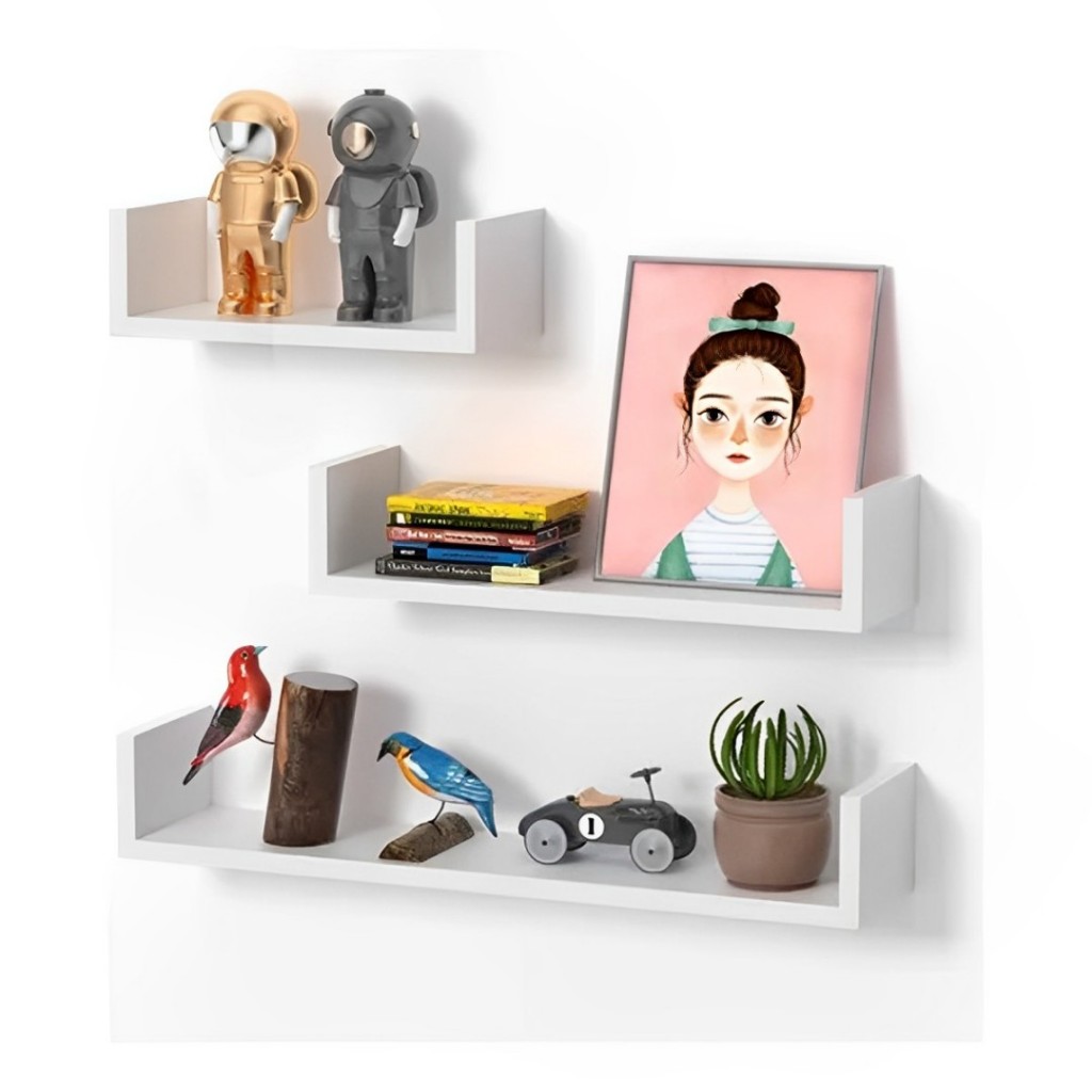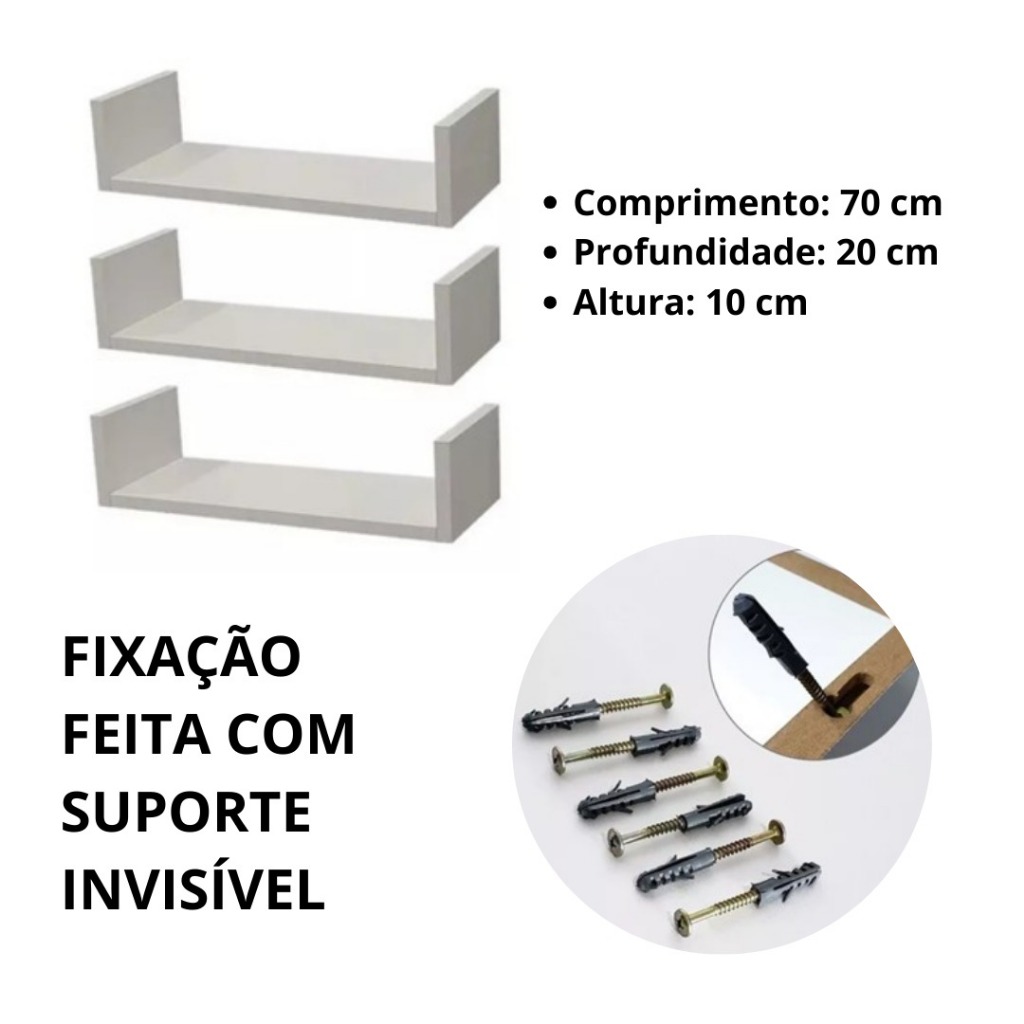 Jogo Kit 3 Prateleiras Em U 70x20 Quarto Sala Cozinha Mdf Brancas