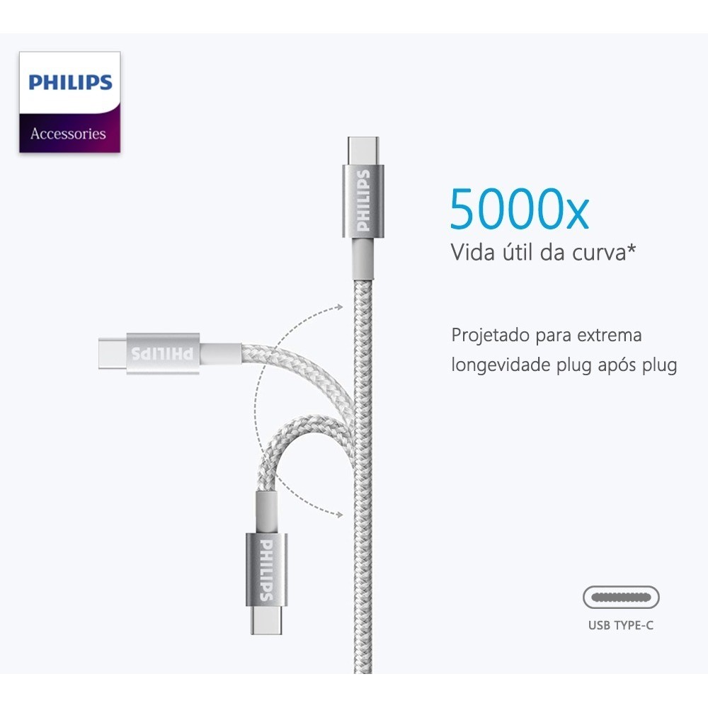 Cabo Usb Turbo Tipo C Philips Original Carregamento Rapido 1.2 Metro Série Premium Alumínio