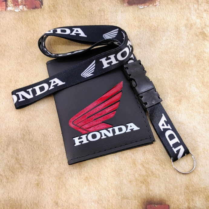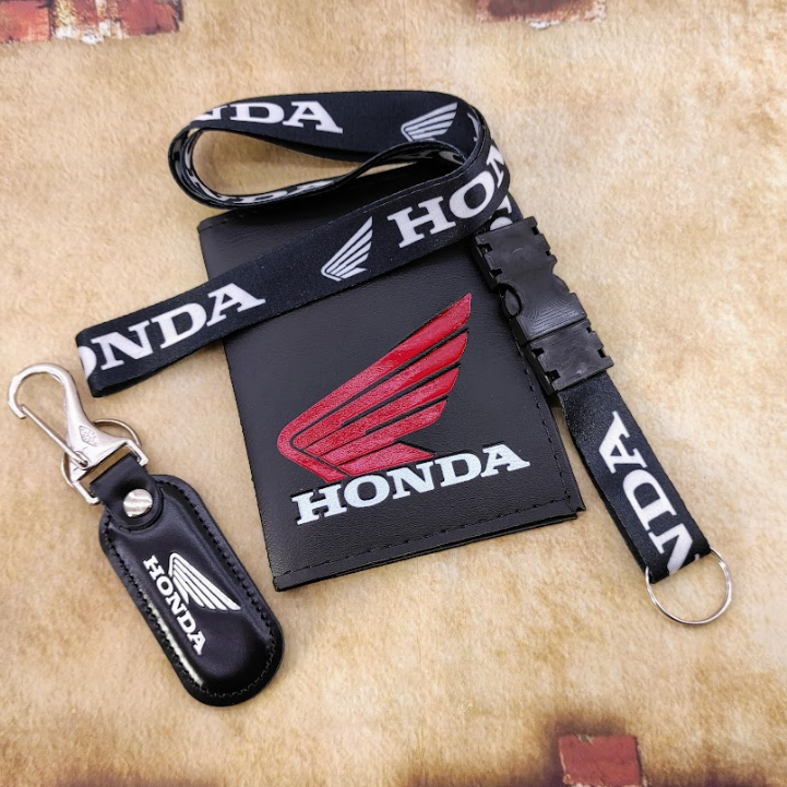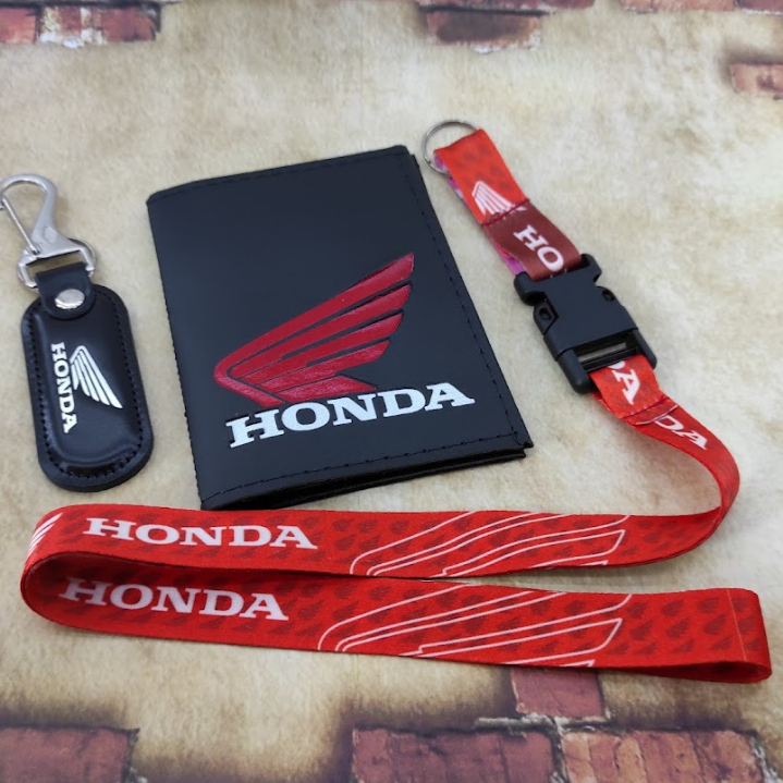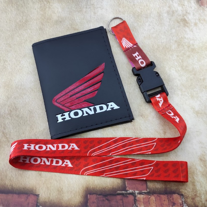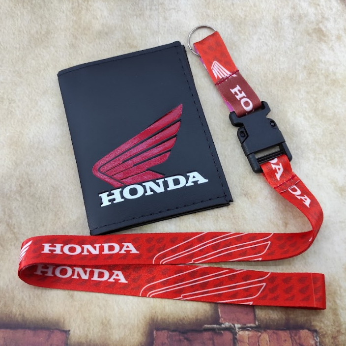 Honda Vermelho Kit Porta Documentos em Couro + Cordão Chaveiro CG CBR