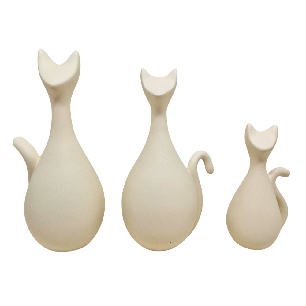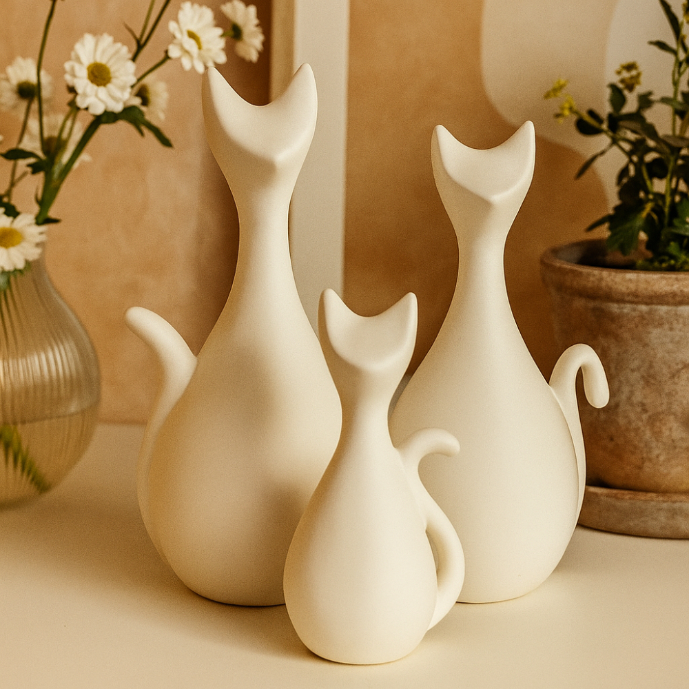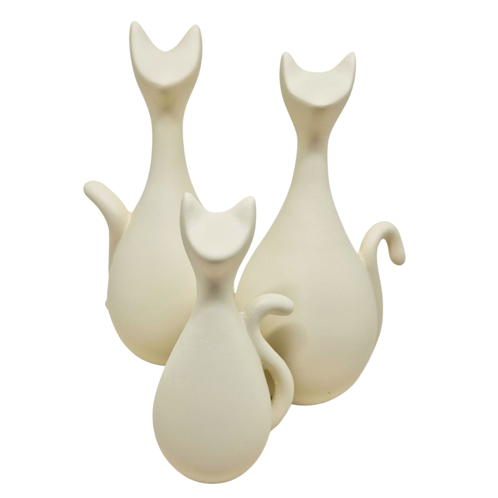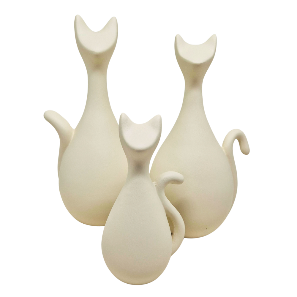 Trio de Gatos Enfeite Cerâmica Decoração Sala