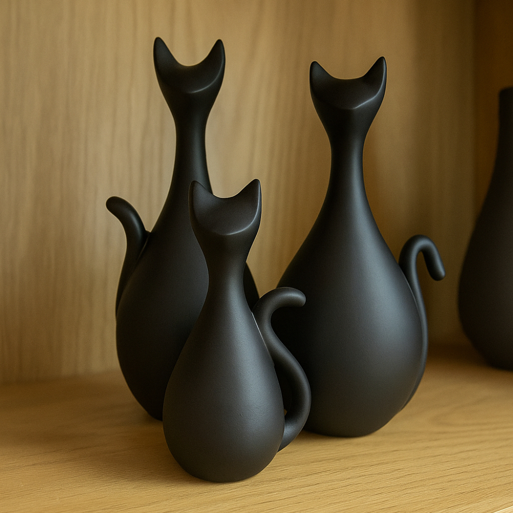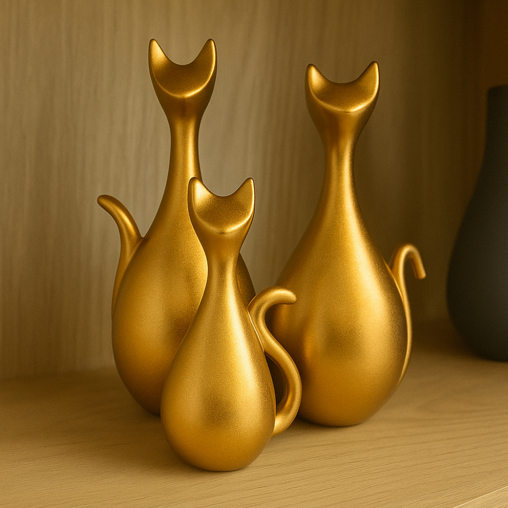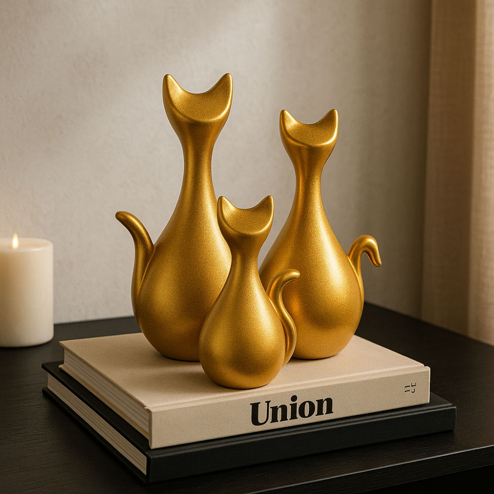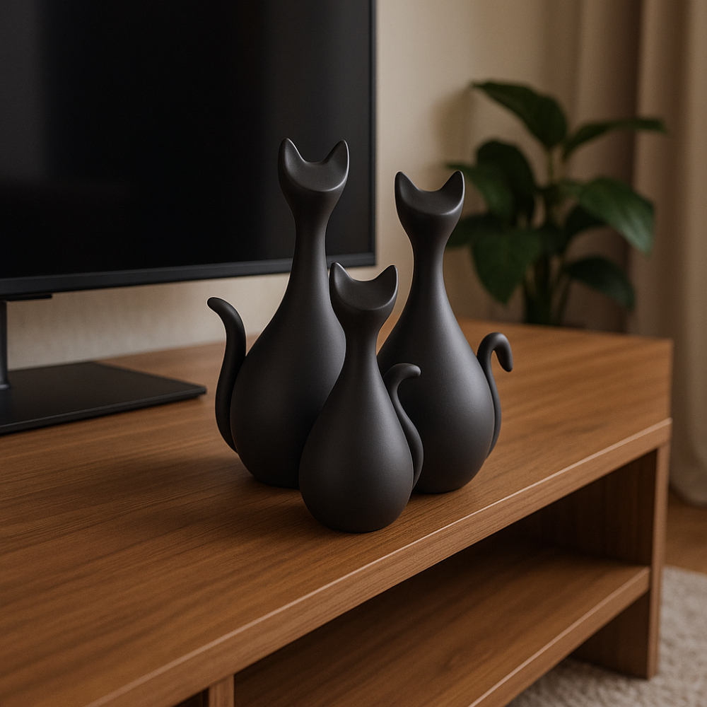 Trio de Gatos Enfeite Cerâmica Decoração Sala