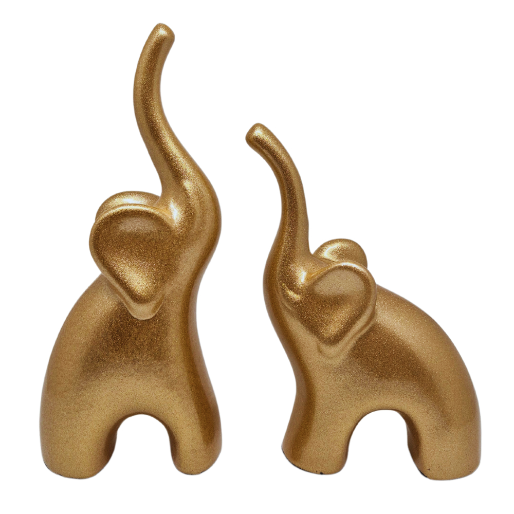 Enfeite Rack Sala Dupla de Elefante Decorativo Cerâmica