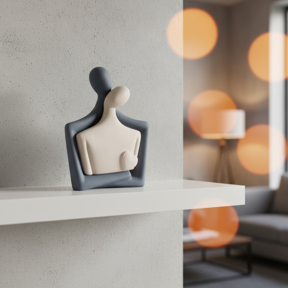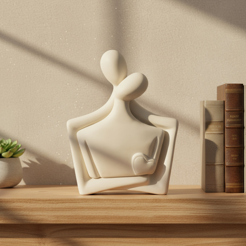 Escultura Casal Apaixonado Decoração Cerâmica Rack Sala Escritório